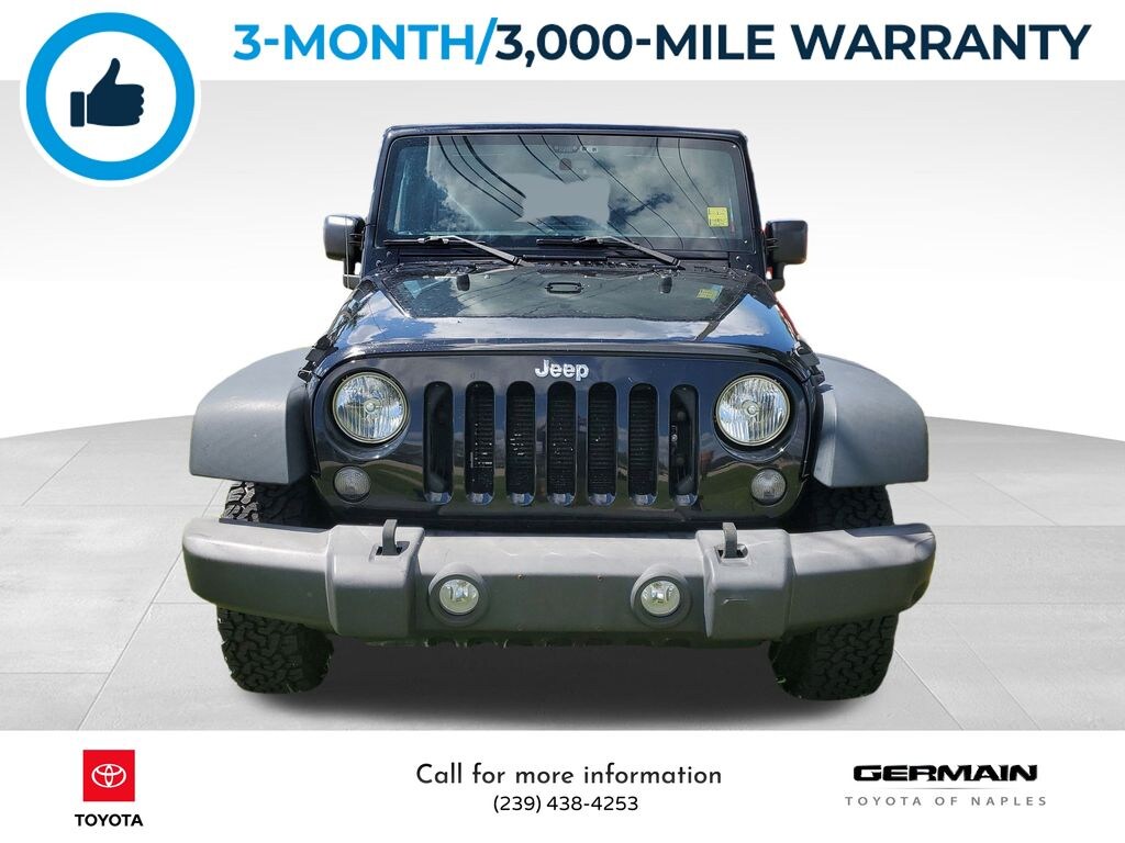 3 Month/3000 Mile Warranty, Local Trade, Clean Carfax, Service Records Available!, 17" x 7.5" Aluminum Wheels, ABS brakes, Auto-Dimming Mirror w/Reading Lamp, Chrome/Leather Wrapped Shift Knob, Compass, Connectivity Group, Deep Tint Sunscreen Windows, Electronic Stability Control, Front 1-Touch Down Power Windows, Leather Wrapped Steering Wheel, Low tire pressure warning, Power Convenience Group, Power Heated Mirrors, Power Locks, Quick Order Package 24S, Remote Keyless Entry, Remote USB Port, Security Alarm, Tire Pressure Monitoring Display, Traction control, Uconnect Voice Command w/Bluetooth, Vehicle Information Center, 16" x 7.0" Luxury Styled Steel Wheels, 3.21 Rear Axle Ratio, 4-Wheel Disc Brakes, 8 Speakers, Air Conditioning, AM/FM radio, Audio Jack Input for Mobile Devices, Brake assist, CD player, Cloth Seats w/Adjustable Head Restraints, Driver door bin, Driver vanity mirror, Dual front impact airbags, Front anti-roll bar, Front Bucket Seats, Front Center Armrest w/Storage, Front fog lights, Integrated roll-over protection, Normal Duty Suspension, Occupant sensing airbag, Outside temperature display, Passenger door bin, Passenger vanity mirror, Power steering, Radio: 130, Rear anti-roll bar, Speed control, Split folding rear seat, Steering wheel mounted audio controls, Sunrider Soft Top, Tachometer, Tilt steering wheel, Trip computer, Variably intermittent wipers, Fresh Oil change, Fully detailed, 17" x 7.5" Aluminum Wheels, ABS brakes, Auto-Dimming Mirror w/Reading Lamp, Chrome/Leather Wrapped Shift Knob, Compass, Connectivity Group, Deep Tint Sunscreen Windows, Electronic Stability Control, Front 1-Touch Down Power Windows, Leather Wrapped Steering Wheel, Low tire pressure warning, Power Convenience Group, Power Heated Mirrors, Power Locks, Quick Order Package 24S, Remote Keyless Entry, Remote USB Port, Security Alarm, Tire Pressure Monitoring Display, Traction control, Uconnect Voice Command w/Bluetooth, Vehicle Information Center.