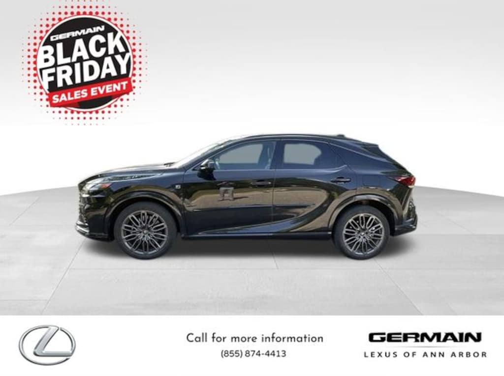 2023 Lexus RX 12 Speakers, 21" Alloy Wheels, 3.74 Axle Ratio, 4-Wheel Disc Brakes, ABS brakes, Adaptive suspension, Air Conditioning, Alloy wheels, AM/FM radio: SiriusXM, Anti-whiplash front head restraints, Auto High-beam Headlights, Auto tilt-away steering wheel, Auto-dimming door mirrors, Auto-dimming Rear-View mirror, Auto-leveling suspension, Automatic temperature control, Brake assist, Bumpers: body-color, Compass, Delay-off headlights, Driver door bin, Driver vanity mirror, Dual front impact airbags, Dual front side impact airbags, Electronic Stability Control, Emergency communication system: Safety Connect (10-year trial), Exterior Parking Camera Rear, Four wheel independent suspension, Front anti-roll bar, Front Bucket Seats, Front Center Armrest, Front dual zone A/C, Front fog lights, Front reading lights, Fully automatic headlights, Garage door transmitter: HomeLink, Heads-Up Display, Heated & Ventilated Front Seats, Heated door mirrors, Heated front seats, Illuminated entry, Leather Shift Knob, Leather/Ultra Suede Seat Trim, Low tire pressure warning, Memory seat, Navigation System, Occupant sensing airbag, Outside temperature display, Overhead airbag, Overhead console, Panic alarm, Passenger door bin, Passenger vanity mirror, Power door mirrors, Power driver seat, Power Liftgate, Power moonroof, Power passenger seat, Power steering, Power windows, Radio data system, Radio: Lexus Interface, Rain sensing wipers, Rear air conditioning, Rear anti-roll bar, Rear reading lights, Rear seat center armrest, Rear side impact airbag, Rear window defroster, Rear window wiper, Remote keyless entry, Security system, Speed control, Speed-sensing steering, Split folding rear seat, Spoiler, Sport steering wheel, Steering wheel memory, Steering wheel mounted audio controls, Telescoping steering wheel, Tilt steering wheel, Traction control, Trip computer, Turn signal indicator mirrors, Variably intermittent wipers, Ventilated front seats, Wireless Apple CarPlay/Wireless Android Auto. 6-Speed Automatic 2.4L I4 PDI Hybrid Turbocharged DOHC 16V LEV3-SULEV30 271hp