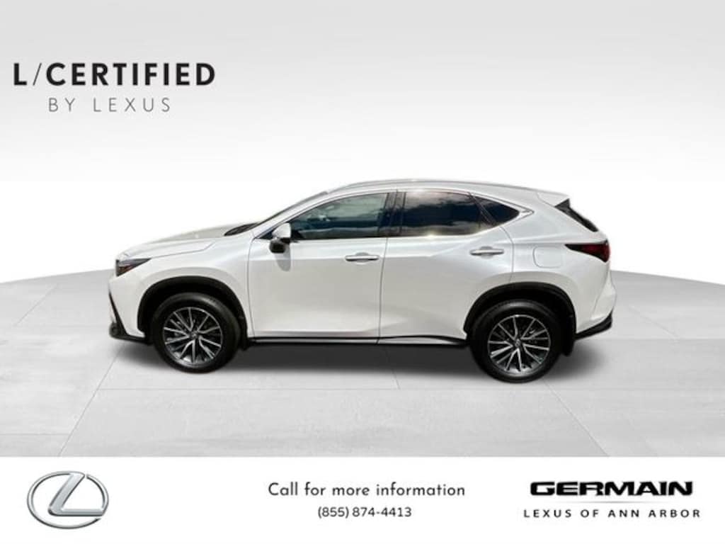 2025 Lexus NX L/Certified Certified, 10 Speakers, 4-Wheel Disc Brakes, ABS brakes, Air Conditioning, Alloy wheels, AM/FM radio: SiriusXM, Auto High-beam Headlights, Auto-dimming door mirrors, Auto-dimming Rear-View mirror, Automatic temperature control, Brake assist, Bumpers: body-color, Delay-off headlights, Driver door bin, Driver vanity mirror, Dual front impact airbags, Dual front side impact airbags, Electronic Stability Control, Emergency communication system: Safety Connect (up to 10-year trial subscription included), Exterior Parking Camera Rear, Four wheel independent suspension, Front anti-roll bar, Front Bucket Seats, Front Center Armrest, Front dual zone A/C, Front fog lights, Front reading lights, Fully automatic headlights, Garage door transmitter: HomeLink, Heated door mirrors, Heated Front Bucket Seats, Heated front seats, Illuminated entry, Knee airbag, Leather Shift Knob, Leather steering wheel, Low tire pressure warning, Navigation system: Drive Connect Cloud Navigation (subscription required), NuLuxe Seat Trim, Occupant sensing airbag, Outside temperature display, Overhead airbag, Overhead console, Panic alarm, Passenger door bin, Passenger vanity mirror, Power door mirrors, Power driver seat, Power Liftgate, Power passenger seat, Power steering, Power windows, Radio data system, Radio: 10-Speaker Lexus Premium Sound, Rain sensing wipers, Rear anti-roll bar, Rear reading lights, Rear seat center armrest, Rear window defroster, Rear window wiper, Remote keyless entry, Security system, Speed control, Speed-sensing steering, Speed-Sensitive Wipers, Split folding rear seat, Spoiler, Steering wheel mounted audio controls, Tachometer, Telescoping steering wheel, Tilt steering wheel, Traction control, Trip computer, Turn signal indicator mirrors, Variably intermittent wipers, Wheels: 18" Alloy w/Dark Gray Met & Machined Finish, Wireless Apple CarPlay/Wireless Android Auto. Priced below KBB Fair Purchase Price! 8-Speed Automatic 2.4L I4 DOHC 16V