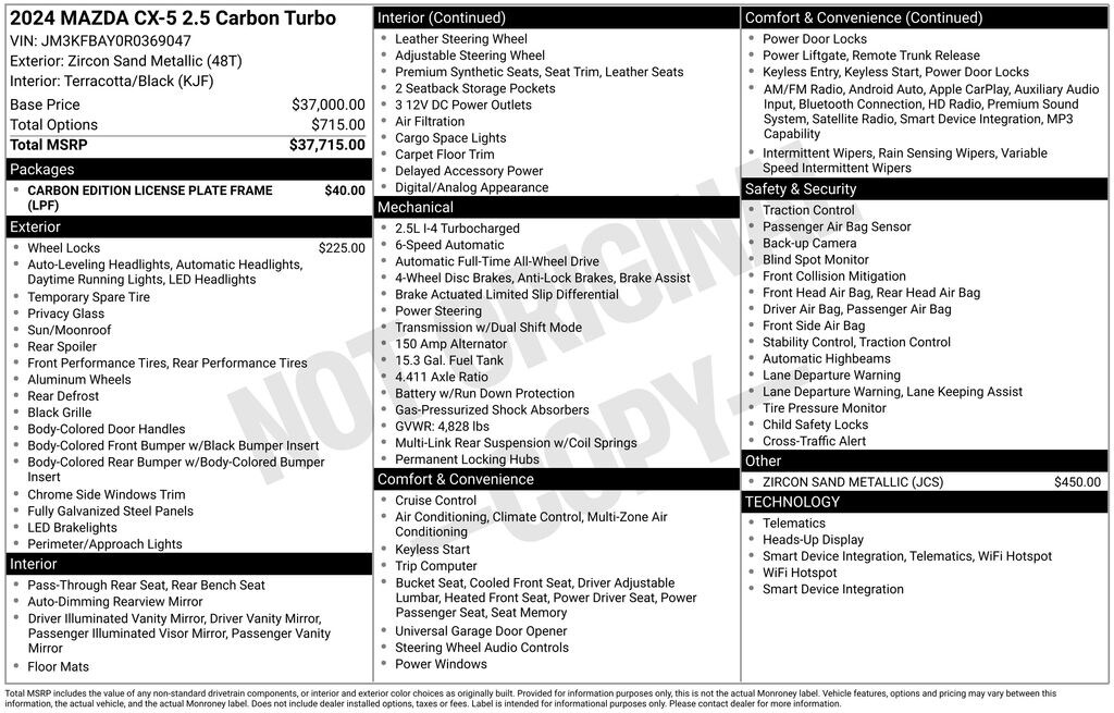 Certified Pre Owned 2024 MazdaCX-5 2.5 Carbon Turbo