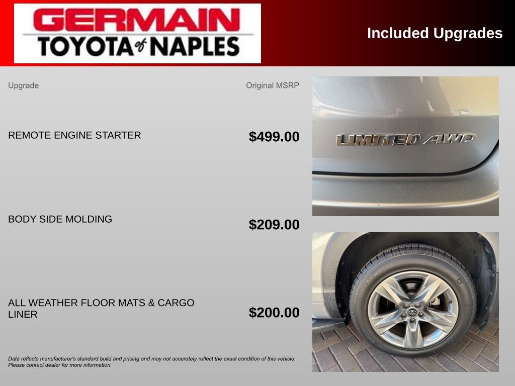 Toyota Silver Certified Vehicle, One Owner, Local Trade, Rear View Camera, Moonroof, Navigation, Low Miles, Service Records Available!, Toyota Silver Certified Certified, AWD, 12 Speakers, 3rd row seats: split-bench, 4-Wheel Disc Brakes, 4.154 Axle Ratio, ABS brakes, Air Conditioning, Alloy wheels, AM/FM radio: SiriusXM, Auto-dimming Rear-View mirror, Automatic temperature control, Brake assist, Bumpers: body-color, CD player, Delay-off headlights, Driver door bin, Driver vanity mirror, Dual front impact airbags, Dual front side impact airbags, Electronic Stability Control, Exterior Parking Camera Rear, Four wheel independent suspension, Front anti-roll bar, Front Bucket Seats, Front Center Armrest, Front dual zone A/C, Front fog lights, Front reading lights, Fully automatic headlights, Garage door transmitter, Heated door mirrors, Heated front seats, Heated/Ventilated Front Bucket Seats, Illuminated entry, Knee airbag, Leather Shift Knob, Low tire pressure warning, Memory seat, Navigation System, Occupant sensing airbag, Outside temperature display, Overhead airbag, Overhead console, Panic alarm, Passenger door bin, Passenger vanity mirror, Perforated Leather Seat Material, Power door mirrors, Power driver seat, Power Liftgate, Power moonroof, Power passenger seat, Power steering, Power windows, Radio: Entune Premium JBL Audio w/Nav & App Suite, Rear air conditioning, Rear anti-roll bar, Rear Parking Sensors, Rear reading lights, Rear window defroster, Rear window wiper, Reclining 3rd row seat, Remote keyless entry, Roof rack: rails only, Security system, Speed control, Speed-sensing steering, Split folding rear seat, Spoiler, Steering wheel mounted audio controls, Tachometer, Telescoping steering wheel, Tilt steering wheel, Traction control, Trip computer, Turn signal indicator mirrors, Variably intermittent wipers, Ventilated front seats, Wheels: 19" 5-Spoke Chromtec Alloy, AWD.