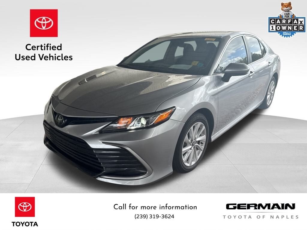 Toyota Celestial Silver Metallic 2023 Camry LE Certified, Carfax 1-Owner. 4D Sedan 2.5L I4 DOHC 16V 8-Speed Automatic FWD