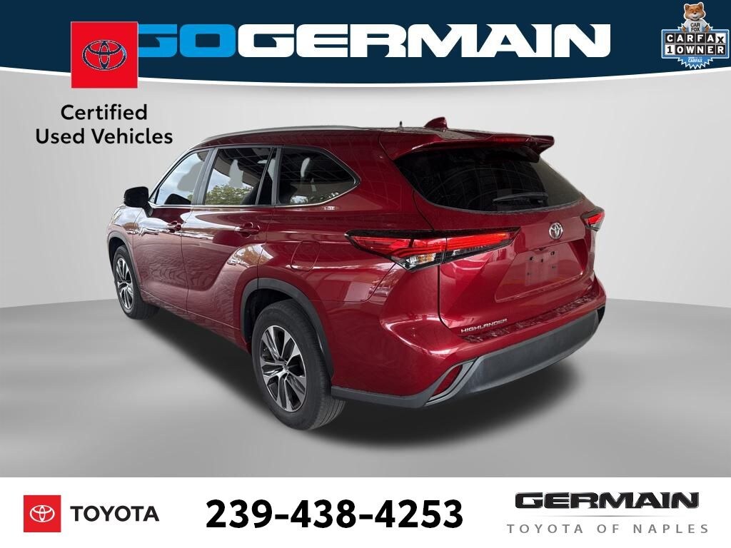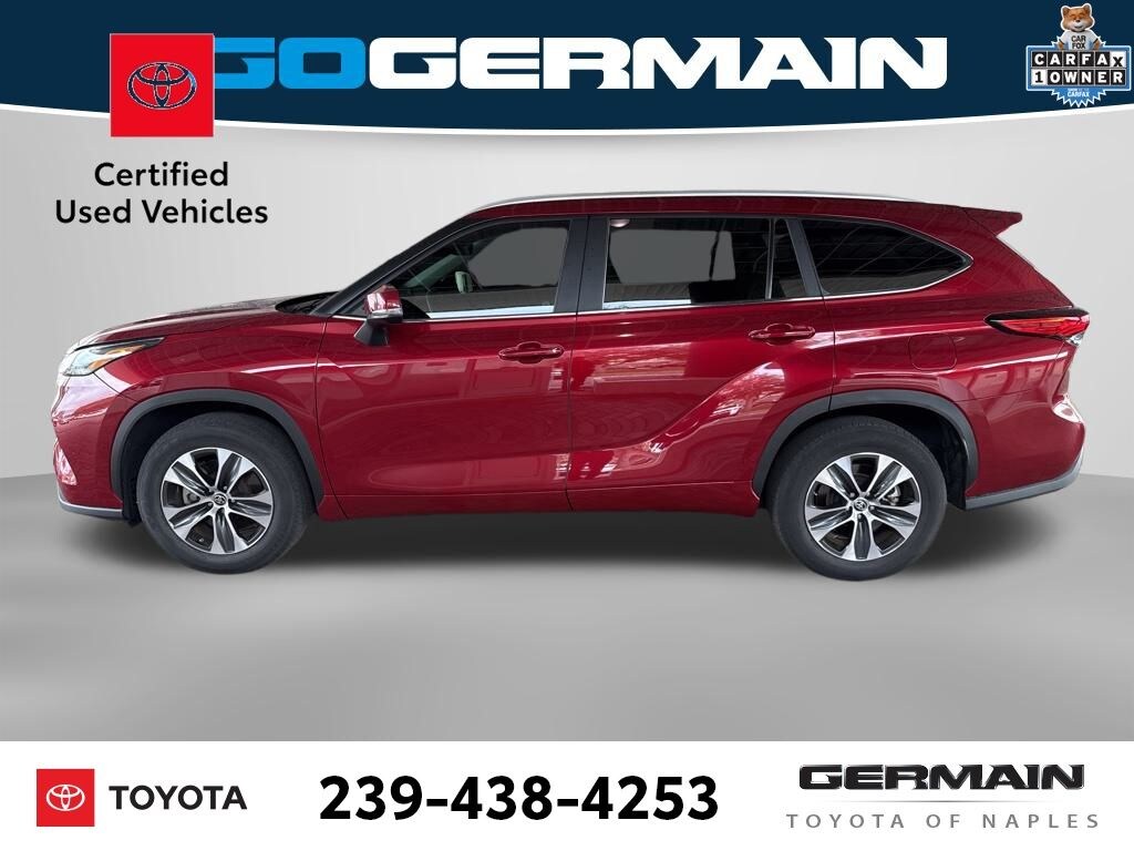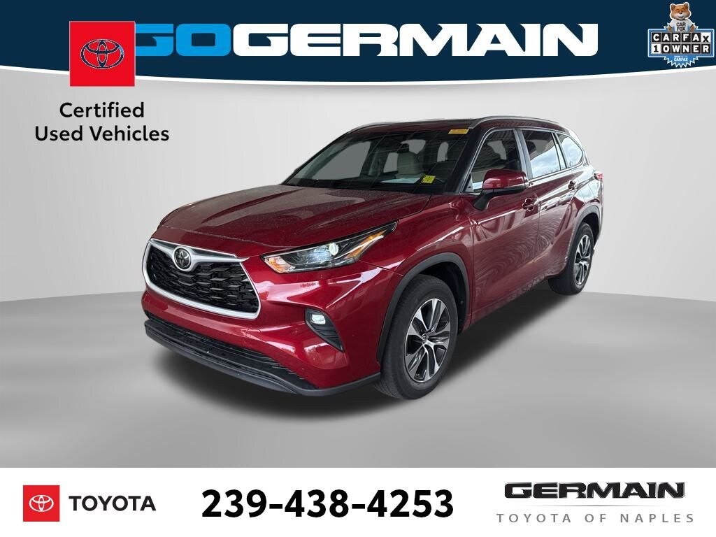Toyota Ruby Flare Pearl 2023 Highlander XLE Certified, Carfax 1-Owner. 4D Sport Utility 2.4L I4 PDI Turbocharged DOHC 16V LEV3-SULEV30 265hp 8-Speed Automatic FWD