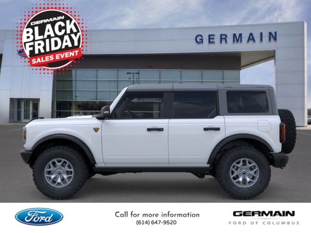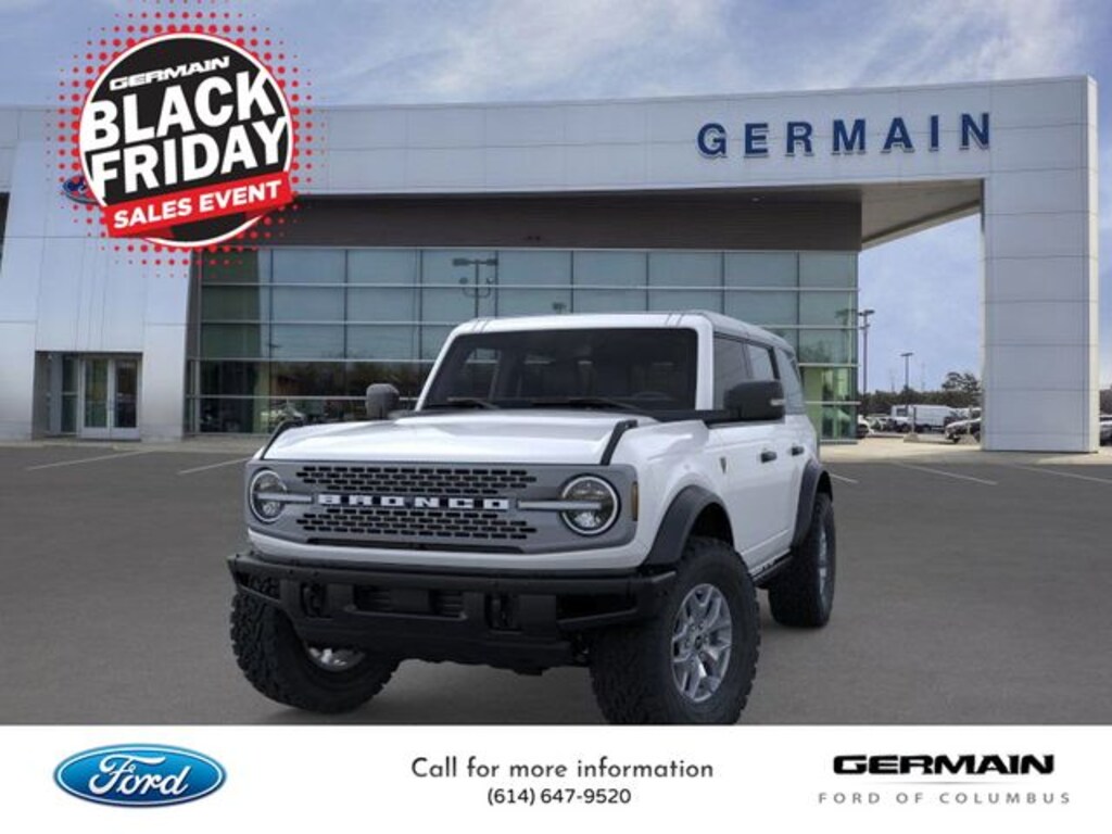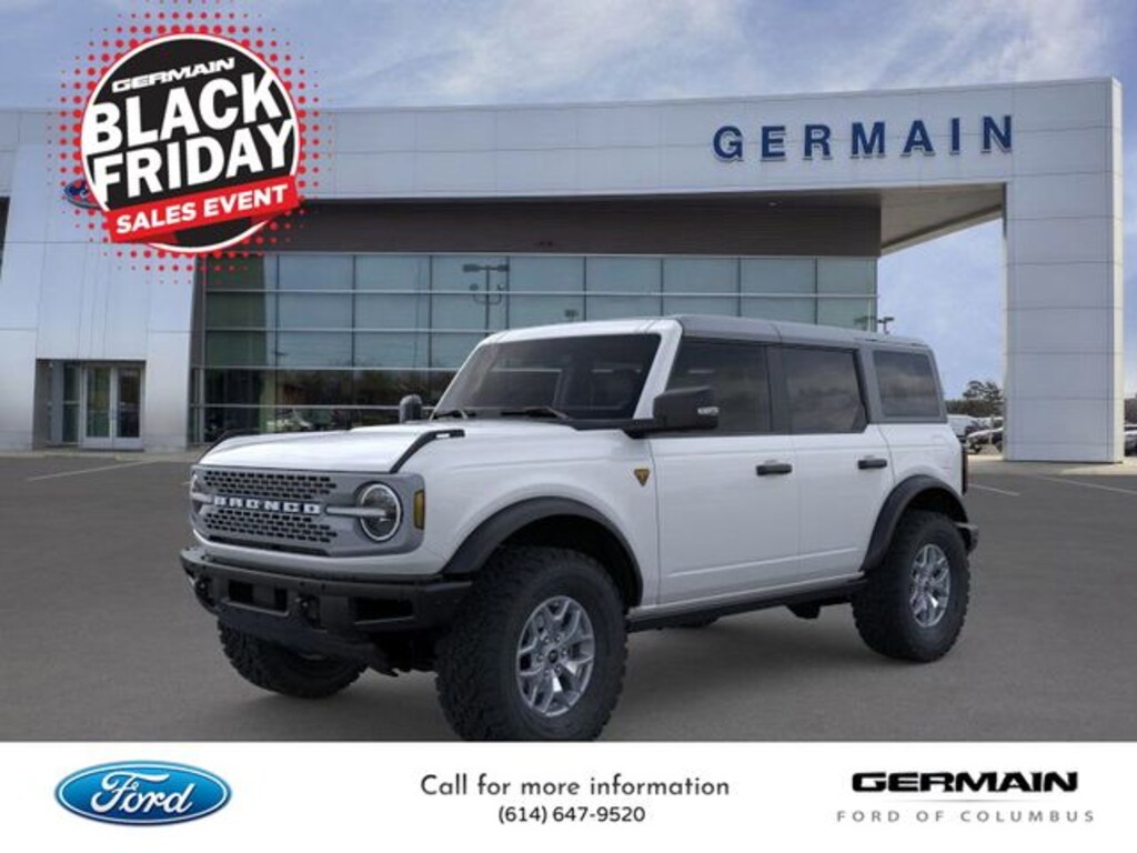 Oxford White 2025 Ford Bronco Badlands 4WD 10-Speed Automatic 2.7L EcoBoost V6 Leather Seats, Heated Front Seats, Heated Steering Wheel, Remote Start, 360-Degree Camera, Adaptive Cruise Control, Navigation, Collision Avoidance System, Blind Spot Monitors, Lane Keeping Assist, B&O 12-Speaker Audio System, Android Auto, Apple Carplay, Wi-Fi Hotspot, Carbonized Gray Molded In Color Hard Top, Keyless Access with Push Button Technology, Touch Screen, Backup Camera, Automatic Headlights, Bluetooth.