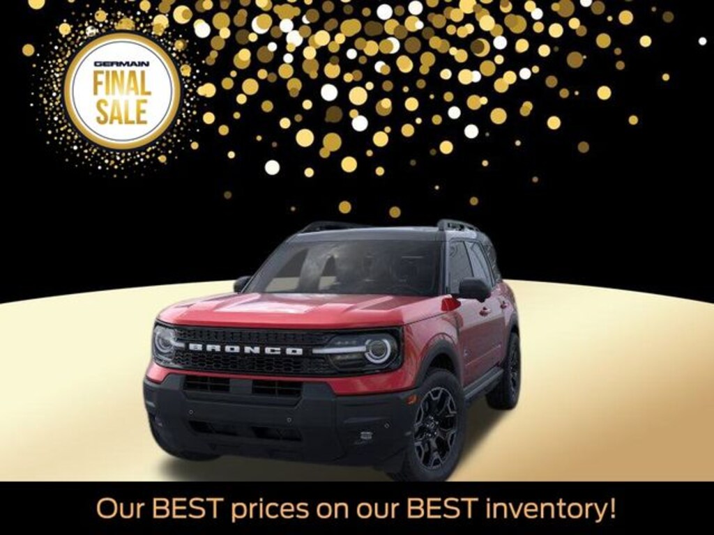 Ruby Red Metallic Tinted Clearcoat 2025 Ford Bronco Sport Outer Banks 4WD 8-Speed Automatic 1.5L EcoBoost Leather Seats, Heated Steering Wheel, Remote Start, 360-Degree Camera, Adaptive Cruise Control, Navigation, Collision Avoidance System, Blind Spot Monitors, Lane Keeping Assist, B&O 10-Speaker Audio System, Android Auto, Apple Carplay, Wi-Fi Hotspot, Keyless Access with Push Button Technology, Touch Screen, Backup Camera, Automatic Headlights, Bluetooth, Sunroof, Heated Seats, RETIRED FCTP UNIT AS OF 11/5 WITH 2129 MILES.