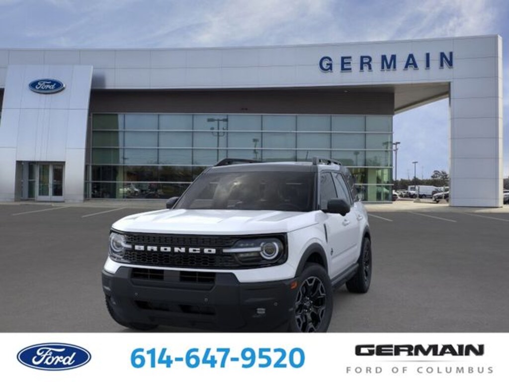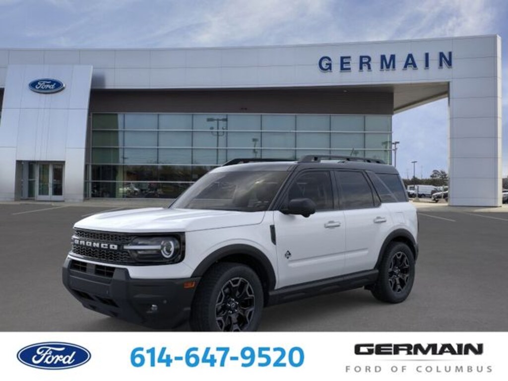 Oxford White 2025 Ford Bronco Sport Outer Banks 4WD 8-Speed Automatic 1.5L EcoBoost Leather Seats, Power Sunroof, Heated Front Seats, Heated Steering Wheel, Remote Start, 360-Degree Camera, Adaptive Cruise Control, Navigation, Collision Avoidance System, Blind Spot Monitors, Lane Keeping Assist, B&O 10-Speaker Audio System, Android Auto, Apple Carplay, Wi-Fi Hotspot, Keyless Access with Push Button Technology, Touch Screen, Backup Camera, Automatic Headlights, Bluetooth.