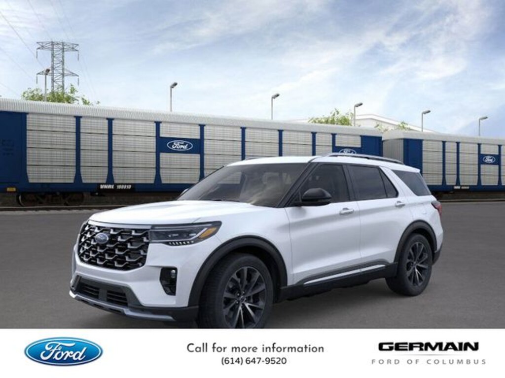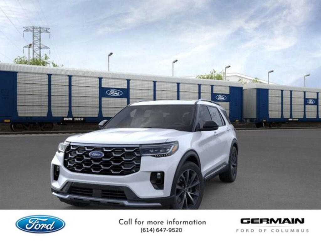 Space White Metallic 2025 Ford Explorer Platinum 4WD 10-Speed Automatic 3.0L EcoBoost V6 20" Premium Dark Tarnished Painted Alloy wheels, ABS brakes, Active Cruise Control, Compass, Electronic Stability Control, Front dual zone A/C, Heated door mirrors, Heated front seats, Heated rear seats, Illuminated entry, Low tire pressure warning, Navigation System, Power Liftgate, Power moonroof, Remote keyless entry, Traction control.