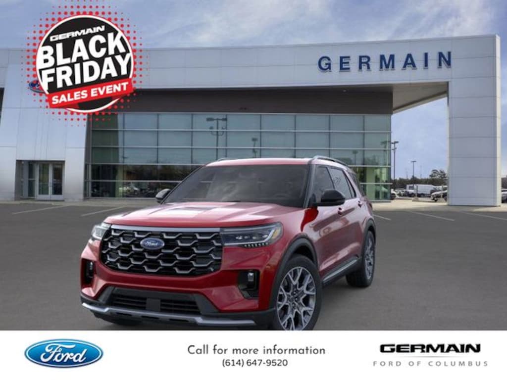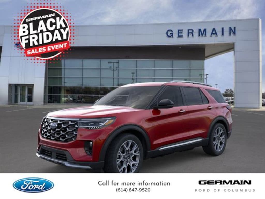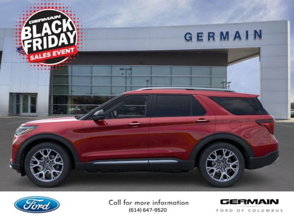 Rapid Red Metallic Tinted Clearcoat 2025 Ford Explorer Platinum 4WD 10-Speed Automatic 3.0L EcoBoost V6 Leather Seats, Massaging Seats, PANORAMIC SUNROOF, Heated and Cooled Front Seats, Heated Rear Seats, Heated Steering Wheel, Remote Start, 360-Degree Camera, Adaptive Cruise Control, Navigation, Collision Avoidance System, Blind Spot Monitors, Lane Keeping Assist, B&O 14-Speaker Audio System, Ford BlueCruise, Android Auto, Apple Carplay, Wi-Fi Hotspot, Power Liftgate, Keyless Access with Push Button Technology, Touch Screen, Backup Camera, Automatic Headlights, Bluetooth.