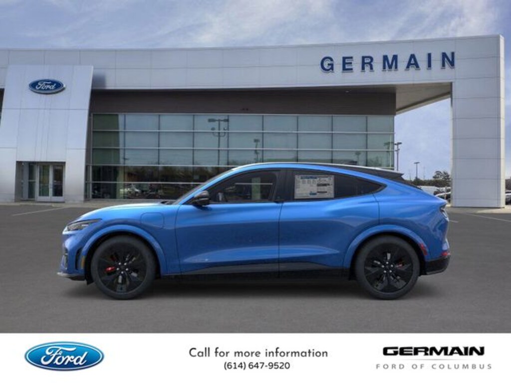 Velocity Blue Metallic 2025 Ford Mustang Mach-E GT AWD Single-Speed Automatic Dual Electric Motor Active X/Leatherette Seats, Heated Front Seats, Heated Steering Wheel, 360-Degree Camera, Adaptive Cruise Control, Navigation, Collision Avoidance System, Blind Spot Monitors, Lane Keeping Assist, B&O 10-Speaker Audio System, Ford BlueCruise, Android Auto, Apple Carplay, Wi-Fi Hotspot, Power Liftgate, Keyless Access with Push Button Technology, Touch Screen, Backup Camera, Automatic Headlights, Bluetooth.