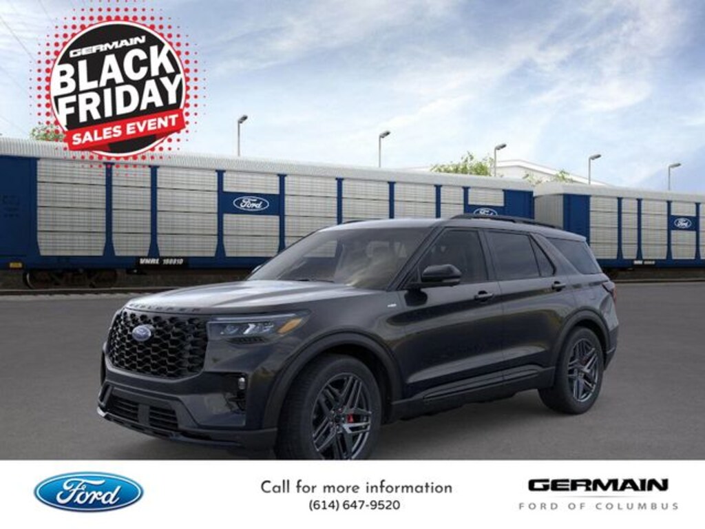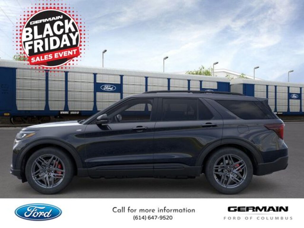 Agate Black Metallic 2026 Ford Explorer ST-Line 4WD 10-Speed Automatic 2.3L EcoBoost I-4 20" Premium Dark Tarnished Painted Alloy wheels, ABS brakes, Active Cruise Control, Compass, Electronic Stability Control, Front dual zone A/C, Heated door mirrors, Heated front seats, Illuminated entry, Low tire pressure warning, Navigation System, Power Liftgate, Remote keyless entry, Traction control.