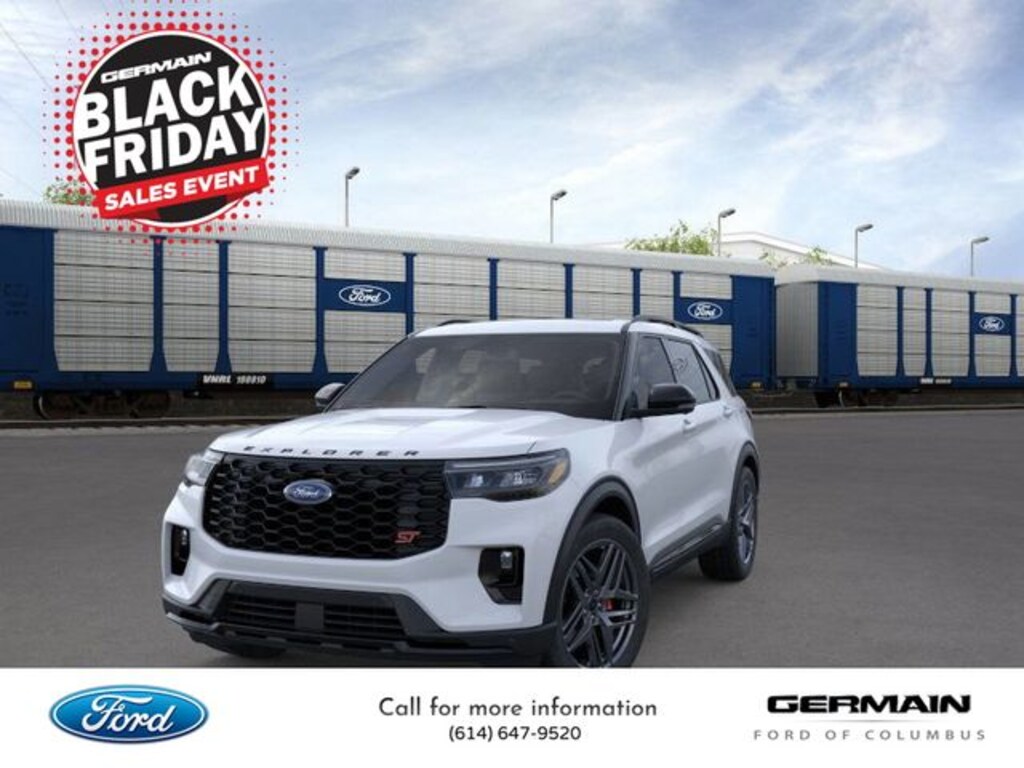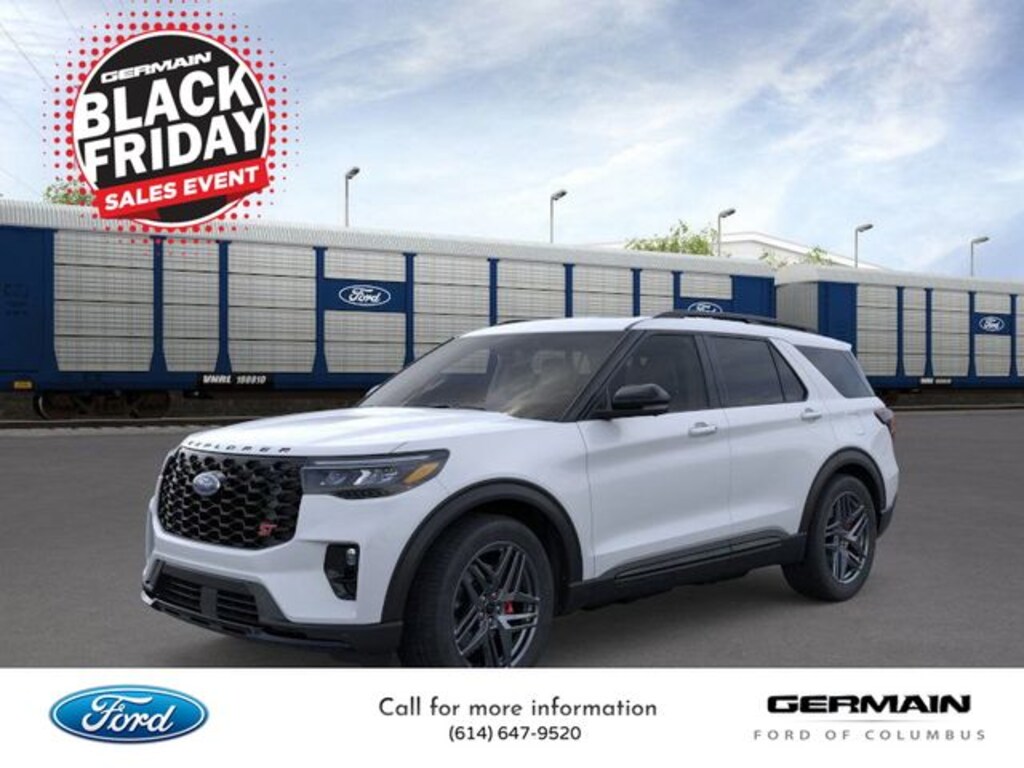 Space White Metallic 2026 Ford Explorer ST 4WD 10-Speed Automatic 3.0L EcoBoost V6 20" Premium Dark Tarnished Painted Alloy wheels, ABS brakes, Active Cruise Control, Compass, Electronic Stability Control, Front dual zone A/C, Heated door mirrors, Heated front seats, Heated rear seats, Illuminated entry, Low tire pressure warning, Navigation System, Power Liftgate, Remote keyless entry, Traction control.