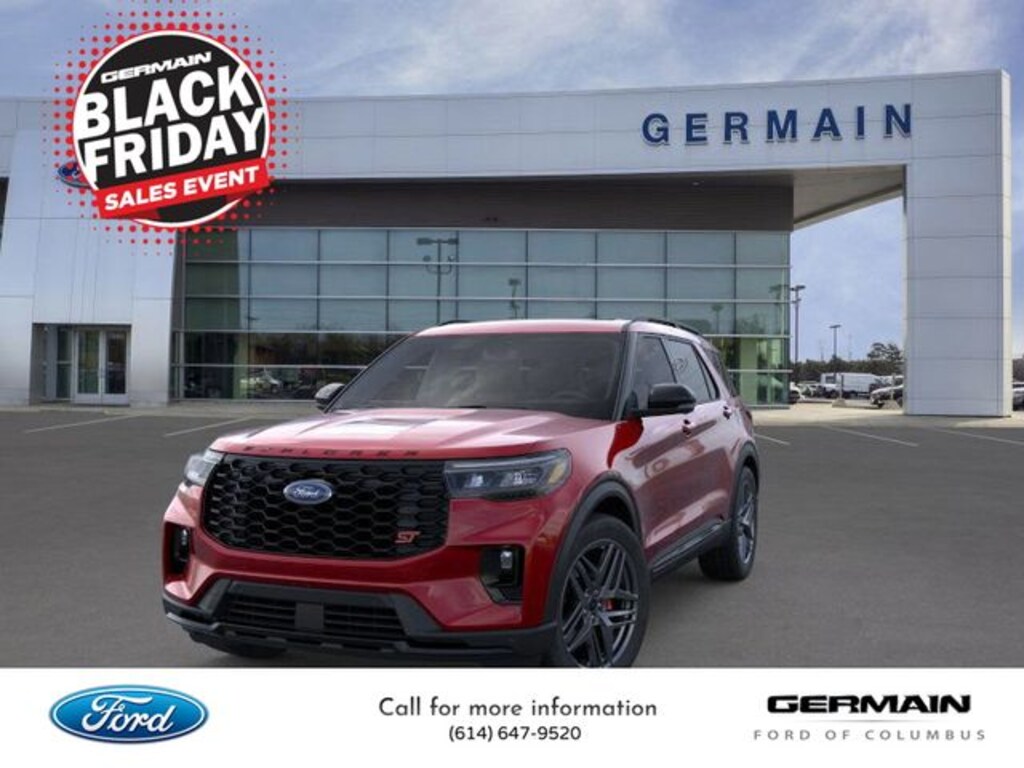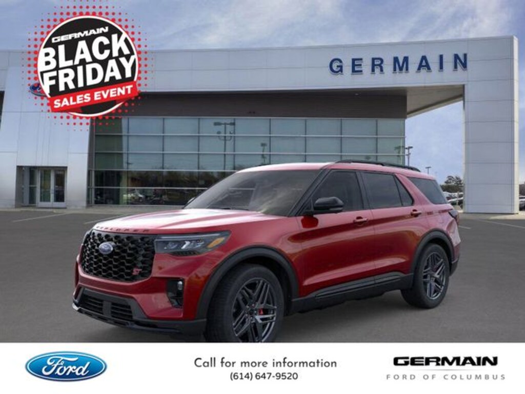 Rapid Red Metallic Tinted Clearcoat 2026 Ford Explorer ST 4WD 10-Speed Automatic 3.0L EcoBoost V6 Massaging Seats, Panoramic Fixed Glass Roof, Heated and Cooled Front Seats, Heated Rear Seats, Heated Steering Wheel, Remote Start, 360-Degree Camera, Adaptive Cruise Control, Navigation, Collision Avoidance System, Blind Spot Monitors, Lane Keeping Assist, B&O 14-Speaker Audio System, Ford BlueCruise, Android Auto, Apple Carplay, Wi-Fi Hotspot, Power Liftgate, Keyless Access with Push Button Technology, Touch Screen, Backup Camera, Automatic Headlights, Bluetooth.