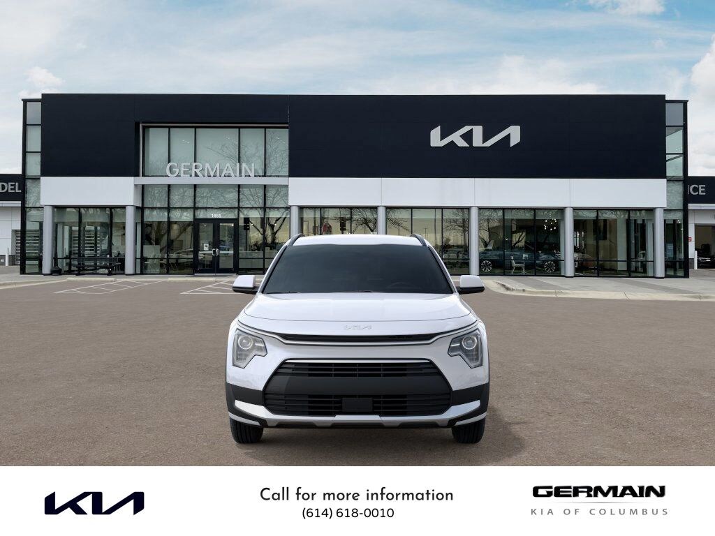 Snow White Pearl 2025 Kia Niro EX FWD 6-Speed Dual Clutch 1.6L I4 DGI Hybrid DOHC 16V LEV3-SULEV30 This vehicle features Light Gray Interior Color Package, 4-Wheel Disc Brakes, 6 Speakers, ABS brakes, Air Conditioning, Alloy wheels, AM/FM radio: SiriusXM, Apple CarPlay & Android Auto, Auto High-beam Headlights, Automatic temperature control, Brake assist, Bumpers: body-color, Cloth & Vegan Leather-Trimmed Seats, Delay-off headlights, Driver door bin, Driver vanity mirror, Dual front impact airbags, Dual front side impact airbags, Electronic Stability Control, Emergency communication system: Kia Connect (includes 1 year free trial), Exterior Parking Camera Rear, Four wheel independent suspension, Front anti-roll bar, Front Bucket Seats, Front Center Armrest, Front dual zone A/C, Front reading lights, Fully automatic headlights, Heated door mirrors, Heated Front Bucket Seats (3-Steps), Heated front seats, Illuminated entry, Knee airbag, Leather Shift Knob, Low tire pressure warning, Navigation System, Occupant sensing airbag, Outside temperature display, Overhead airbag, Overhead console, Panic alarm, Passenger door bin, Passenger vanity mirror, Power door mirrors, Power driver seat, Power steering, Power windows, Radio: AM/FM/HD/SiriusXM, Rain sensing wipers, Rear anti-roll bar, Rear seat center armrest, Rear window defroster, Rear window wiper, Remote keyless entry, Security system, Speed control, Speed-sensing steering, Split folding rear seat, Spoiler, Steering wheel mounted audio controls, Telescoping steering wheel, Tilt steering wheel, Traction control, Trip computer, Turn signal indicator mirrors, Variably intermittent wipers, and Wheels: 6.5J x 16" Aero Alloy.