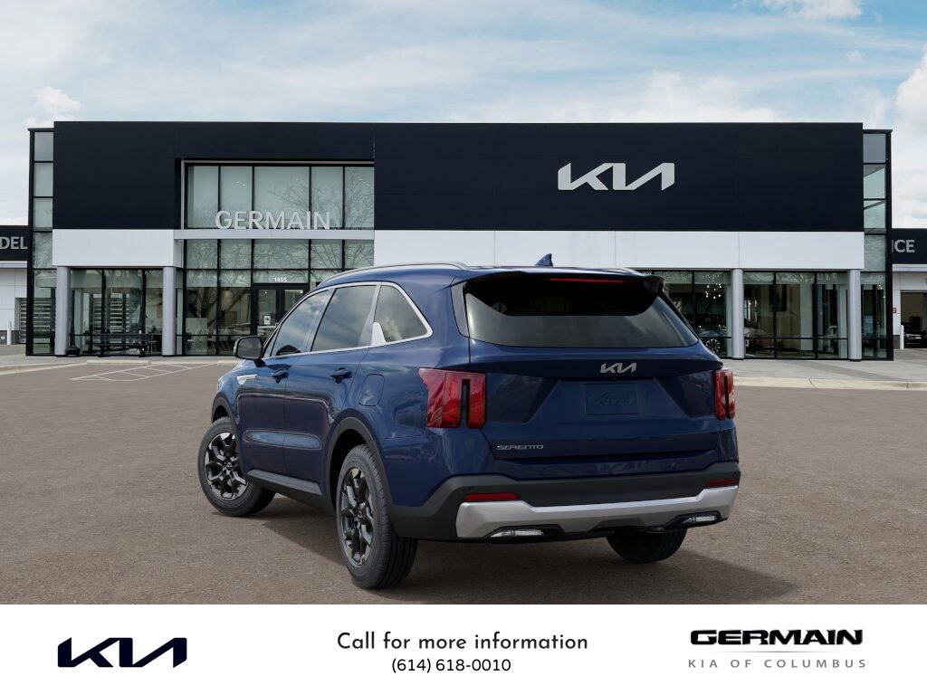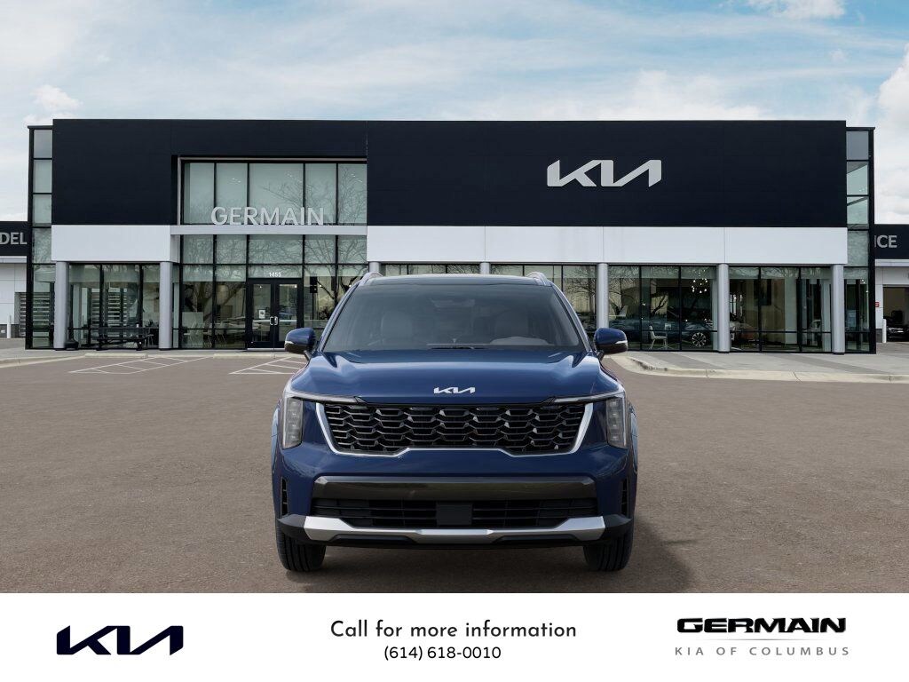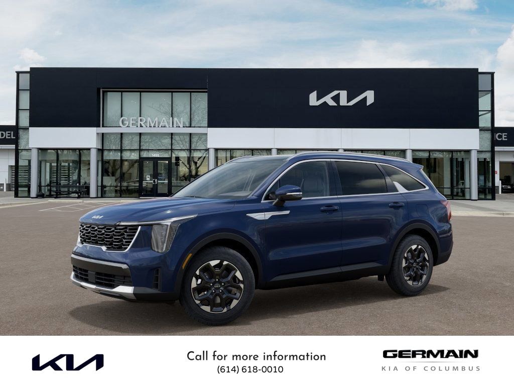 Midnight Lake Blue 2025 Kia Sorento S FWD 8-Speed Automatic 2.5L I4 DGI DOHC 16V LEV3-SULEV30 191hp This vehicle features Panoramic Sunroof Package (LED Interior Lighting and Panoramic Power Sunroof w/Power Sunshade), 3rd row seats: split-bench, 4-Wheel Disc Brakes, 6 Speakers, ABS brakes, Air Conditioning, Alloy wheels, AM/FM radio: SiriusXM, Apple CarPlay & Android Auto, Auto High-beam Headlights, Automatic temperature control, Brake assist, Bumpers: body-color, Carpeted Floor Mats, Delay-off headlights, Driver door bin, Driver vanity mirror, Dual front impact airbags, Dual front side impact airbags, Electronic Stability Control, Emergency communication system: 911 Connect, Exterior Parking Camera Rear, Four wheel independent suspension, Front anti-roll bar, Front Bucket Seats, Front Center Armrest, Front dual zone A/C, Front reading lights, Fully automatic headlights, Heated door mirrors, Heated Front Bucket Seats, Heated front seats, Illuminated entry, Knee airbag, Leather Shift Knob, Leather steering wheel, Low tire pressure warning, Navigation System, Occupant sensing airbag, Outside temperature display, Overhead airbag, Overhead console, Panic alarm, Passenger door bin, Passenger vanity mirror, Power door mirrors, Power driver seat, Power steering, Power windows, Radio data system, Radio: AM/FM Standard Sound System, Rear anti-roll bar, Rear reading lights, Rear seat center armrest, Rear side impact airbag, Rear window defroster, Rear window wiper, Remote keyless entry, Security system, Speed control, Speed-sensing steering, Split folding rear seat, Spoiler, Steering wheel mounted audio controls, SynTex Artificial Leather Seat Trim, Tachometer, Telescoping steering wheel, Tilt steering wheel, Traction control, Trip computer, Turn signal indicator mirrors, Variably intermittent wipers, and Wheels: 18" Gloss Black Alloy.