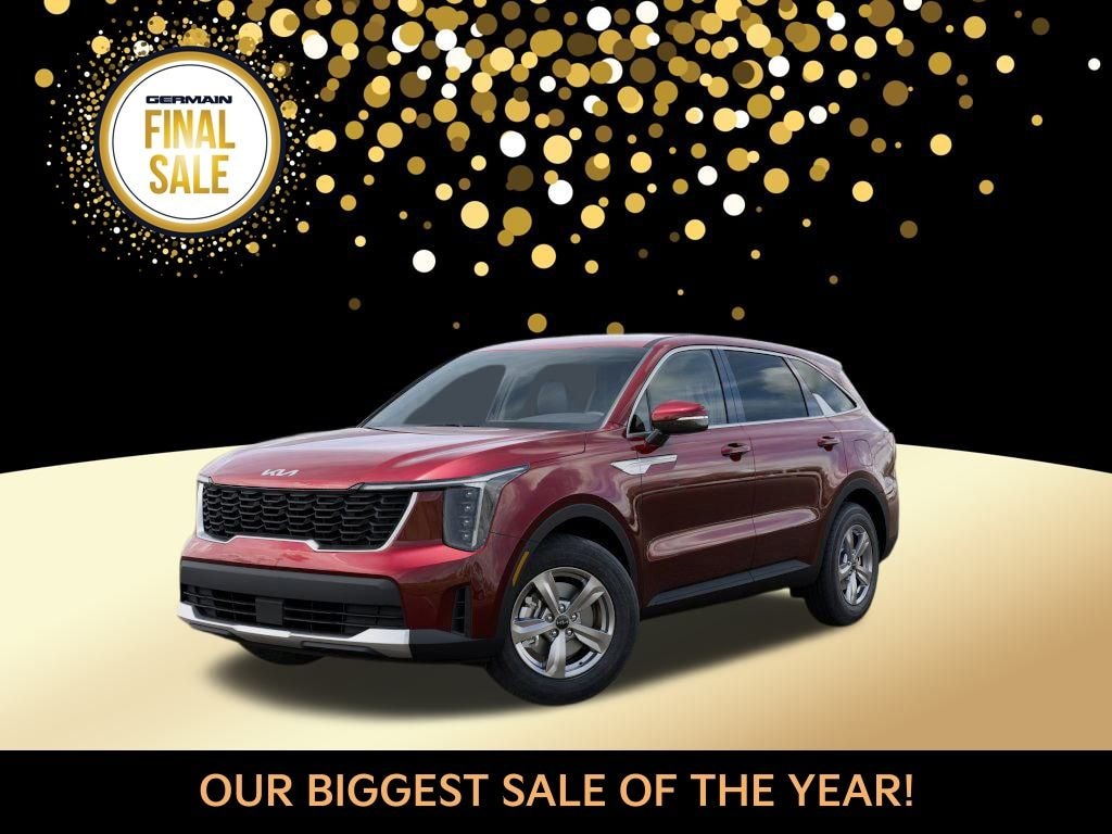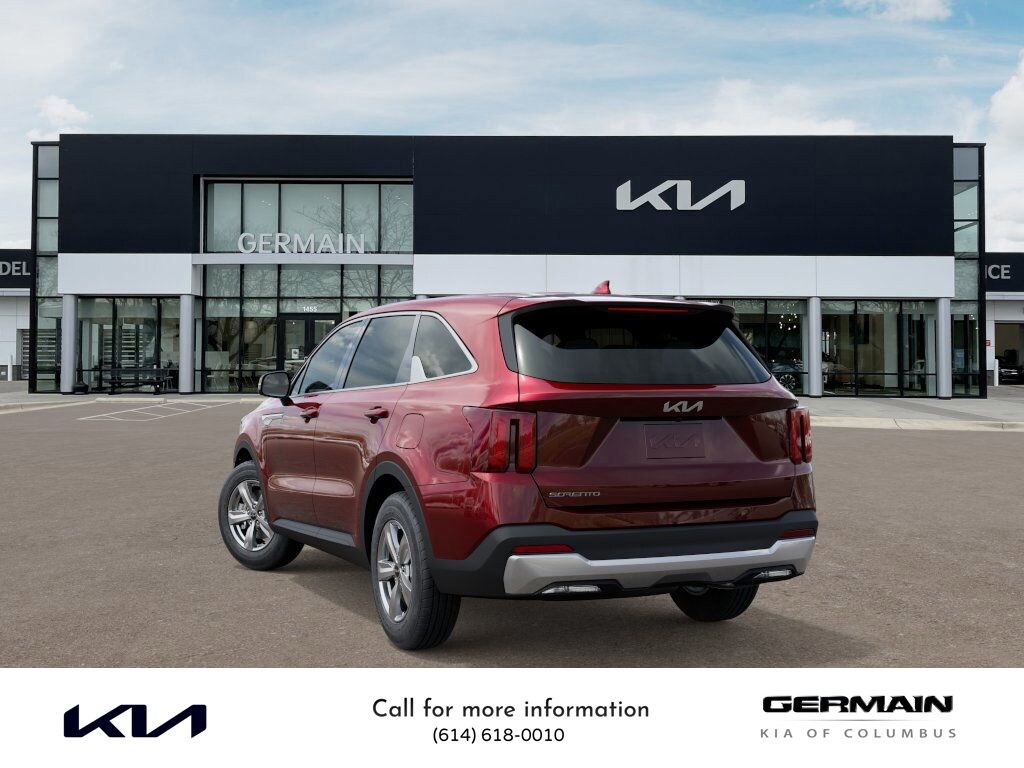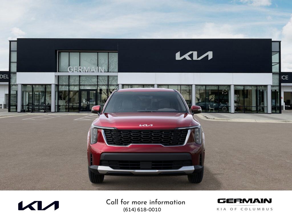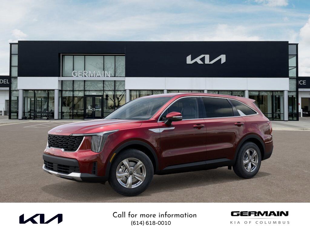 Dawning Red 2025 Kia Sorento LX FWD 8-Speed Automatic 2.5L I4 DGI DOHC 16V LEV3-SULEV30 191hp This vehicle features 17" Alloy Wheels, 3rd row seats: split-bench, 4-Wheel Disc Brakes, 6 Speakers, ABS brakes, Air Conditioning, All Weather Mats, Alloy wheels, AM/FM radio: SiriusXM, Apple CarPlay & Android Auto, Auto High-beam Headlights, Brake assist, Bumpers: body-color, Cloth Seat Trim, Delay-off headlights, Driver door bin, Driver vanity mirror, Dual front impact airbags, Dual front side impact airbags, Electronic Stability Control, Emergency communication system: 911 Connect, Exterior Parking Camera Rear, Four wheel independent suspension, Front anti-roll bar, Front Bucket Seats, Front Center Armrest, Front reading lights, Fully automatic headlights, Heated door mirrors, Illuminated entry, Knee airbag, Low tire pressure warning, Occupant sensing airbag, Outside temperature display, Overhead airbag, Overhead console, Panic alarm, Passenger door bin, Passenger vanity mirror, Power door mirrors, Power steering, Power windows, Radio data system, Radio: AM/FM Standard Sound System, Rear anti-roll bar, Rear reading lights, Rear seat center armrest, Rear side impact airbag, Rear window defroster, Rear window wiper, Remote keyless entry, Security system, Speed control, Speed-sensing steering, Split folding rear seat, Spoiler, Steering wheel mounted audio controls, Tachometer, Telescoping steering wheel, Tilt steering wheel, Traction control, Trip computer, Turn signal indicator mirrors, and Variably intermittent wipers.