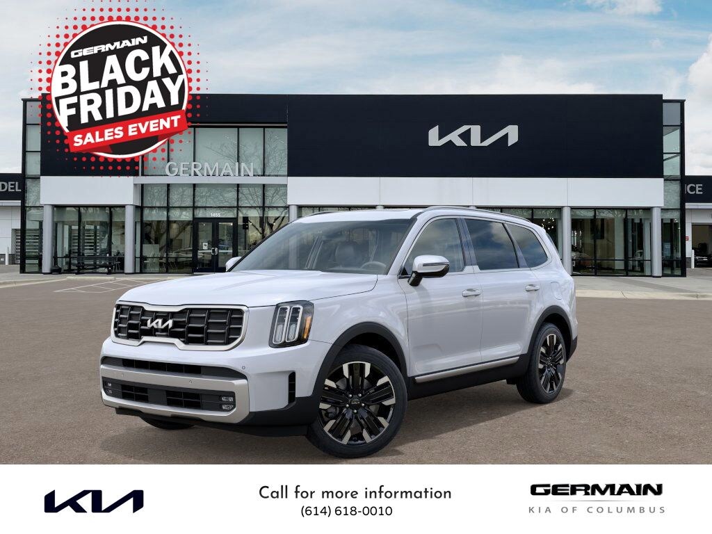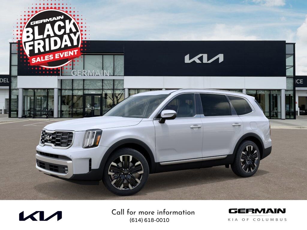 Glacial White Pearl 2025 Kia Telluride SX FWD 8-Speed Automatic 3.8L V6 DOHC This vehicle features SX Captain's Chair Package (2nd Row Captain Chairs), 10 Speakers, 3rd row seats: split-bench, 4-Wheel Disc Brakes, ABS brakes, Air Conditioning, Alloy wheels, AM/FM radio: SiriusXM, Apple CarPlay & Android Auto, Auto High-beam Headlights, Auto-dimming Rear-View mirror, Auto-leveling suspension, Automatic temperature control, Brake assist, Bumpers: body-color, Cargo Cover, Carpet Cargo Mat w/Seatback Protection, Compass, Delay-off headlights, Driver door bin, Driver vanity mirror, Dual front impact airbags, Dual front side impact airbags, Electronic Stability Control, Emergency communication system: 911 Connect, Exterior Parking Camera Rear, Four wheel independent suspension, Front anti-roll bar, Front Bucket Seats, Front Center Armrest, Front dual zone A/C, Front fog lights, Front reading lights, Fully automatic headlights, Garage door transmitter: HomeLink, harman/kardon® Speakers, Heated & Ventilated Front Bucket Seats, Heated door mirrors, Heated front seats, Hybrid Cargo Net, Illuminated entry, Knee airbag, Leather Seat Trim, Leather Shift Knob, Leather steering wheel, Low tire pressure warning, Memory seat, Navigation System, Occupant sensing airbag, Outside temperature display, Overhead airbag, Overhead console, Panic alarm, Passenger door bin, Passenger vanity mirror, Power door mirrors, Power driver seat, Power Liftgate, Power moonroof, Power passenger seat, Power steering, Power windows, Radio data system, Radio: AM/FM Harman Kardon Premium Audio System, Rear air conditioning, Rear anti-roll bar, Rear audio controls, Rear reading lights, Rear seat center armrest, Rear side impact airbag, Rear window defroster, Rear window wiper, Reclining 3rd row seat, Remote keyless entry, Security system, Speed control, Speed-sensing steering, Split folding rear seat, Spoiler, Steering wheel mounted audio controls, Tachometer, Telescoping steering wheel, Tilt steering wheel, Traction control, Trip computer, Turn signal indicator mirrors, Variably intermittent wipers, Ventilated front seats, and Wheels: 20" x 7.5" Black Finish.