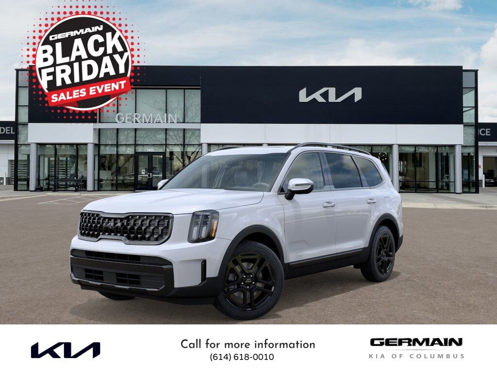 Glacial White Pearl 2025 Kia Telluride EX X-Line AWD 8-Speed Automatic 3.8L V6 DOHC This vehicle features Terracotta Interior Color Package, 3rd row seats: split-bench, 4-Wheel Disc Brakes, 6 Speakers, ABS brakes, Air Conditioning, All Weather Floor Mats, Alloy wheels, AM/FM radio: SiriusXM, Apple CarPlay & Android Auto, Auto High-beam Headlights, Auto-dimming Rear-View mirror, Auto-leveling suspension, Automatic temperature control, Brake assist, Bumpers: body-color, Compass, Delay-off headlights, Driver door bin, Driver vanity mirror, Dual front impact airbags, Dual front side impact airbags, Electronic Stability Control, Emergency communication system: 911 Connect, Exterior Parking Camera Rear, Folding Cargo Tray, Four wheel independent suspension, Front anti-roll bar, Front Bucket Seats, Front Center Armrest, Front dual zone A/C, Front reading lights, Fully automatic headlights, Heated & Ventilated Front Bucket Seats, Heated door mirrors, Heated front seats, Heated steering wheel, Illuminated entry, Knee airbag, Leather Seat Trim, Leather Shift Knob, Leather steering wheel, Low tire pressure warning, Mud Guard Kit, Navigation System, Occupant sensing airbag, Outside temperature display, Overhead airbag, Overhead console, Panic alarm, Passenger door bin, Passenger vanity mirror, Power door mirrors, Power driver seat, Power Liftgate, Power moonroof, Power passenger seat, Power steering, Power windows, Radio data system, Radio: AM/FM Display Audio System, Rear air conditioning, Rear anti-roll bar, Rear audio controls, Rear reading lights, Rear side impact airbag, Rear window defroster, Rear window wiper, Reclining 3rd row seat, Remote keyless entry, Security system, Speed control, Speed-sensing steering, Split folding rear seat, Spoiler, Steering wheel mounted audio controls, Tachometer, Telescoping steering wheel, Tilt steering wheel, Traction control, Trip computer, Turn signal indicator mirrors, Variably intermittent wipers, Ventilated front seats, and Wheels: 20" x 7.5" Black Finish X-LINE Exclusive.
