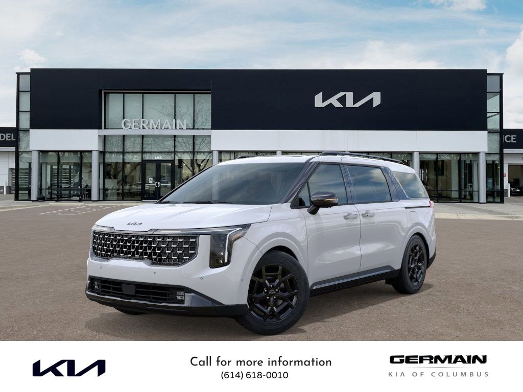 Snow White Pearl 2026 Kia Carnival Hybrid SX Prestige FWD 6-Speed Automatic 1.6L I4 DGI Hybrid Turbocharged DOHC 16V LEV3-SULEV30 This vehicle features SX Prestige Seat Package (2nd Row Laminated Windows, Ambient Lighting, Heated/Ventilated 2nd Row Power VIP Lounge Seats, and High Glossy Interior Trim), 12 Speakers, 3rd row seats: split-bench, 4-Wheel Disc Brakes, ABS brakes, Air Conditioning, Alloy wheels, AM/FM radio: SiriusXM, Apple CarPlay & Android Auto, Auto High-beam Headlights, Auto-dimming Rear-View mirror, Automatic temperature control, Brake assist, Bumpers: body-color, Compass, Delay-off headlights, Driver door bin, Driver vanity mirror, Dual front impact airbags, Dual front side impact airbags, Electronic Stability Control, Emergency communication system, Exterior Parking Camera Rear, Four wheel independent suspension, Front anti-roll bar, Front Bucket Seats, Front Center Armrest, Front dual zone A/C, Front fog lights, Front reading lights, Fully automatic headlights, Garage door transmitter: HomeLink, Heads-Up Display, Heated & Ventilated Front Bucket Seats, Heated door mirrors, Heated front seats, Heated steering wheel, Illuminated entry, Knee airbag, Leather Seat Trim, Leather Shift Knob, Leather steering wheel, Low tire pressure warning, Memory seat, Navigation System, Occupant sensing airbag, Outside temperature display, Overhead airbag, Overhead console, Panic alarm, Passenger door bin, Passenger vanity mirror, Power 2nd-Row Moonroof, Power door mirrors, Power driver seat, Power Liftgate, Power moonroof, Power passenger seat, Power steering, Power windows, Radio: Navigation System w/SiriusXM, Rain sensing wipers, Rear air conditioning, Rear anti-roll bar, Rear reading lights, Rear window defroster, Rear window wiper, Reclining 3rd row seat, Remote keyless entry, Security system, Speed control, Speed-sensing steering, Split folding rear seat, Spoiler, Steering wheel mounted audio controls, Tachometer, Telescoping steering wheel, Tilt steering wheel, Traction control, Trip computer, Turn signal indicator mirrors, Variably intermittent wipers, Ventilated front seats, and Wheels: 19" Black D-Cut Customizing.