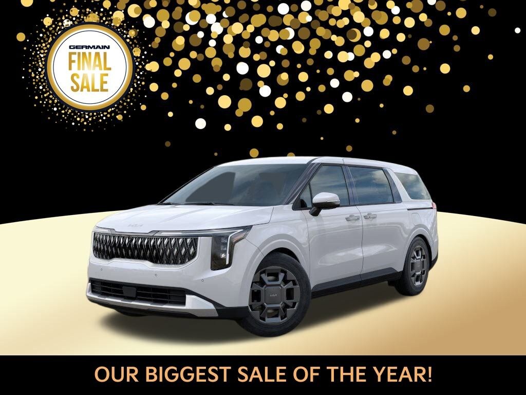 Snow White Pearl 2026 Kia Carnival Hybrid EX FWD 6-Speed Automatic 1.6L I4 DGI Hybrid Turbocharged DOHC 16V LEV3-SULEV30 This vehicle features 3rd row seats: split-bench, 4-Wheel Disc Brakes, 8 Speakers, ABS brakes, Air Conditioning, All Weather Floor Mats (8-Passenger), Alloy wheels, AM/FM radio: SiriusXM, Apple CarPlay & Android Auto, Artificial Leather Seat Trim, Auto High-beam Headlights, Automatic temperature control, Brake assist, Bumpers: body-color, Compass, Delay-off headlights, Driver door bin, Driver vanity mirror, Dual front impact airbags, Dual front side impact airbags, Electronic Stability Control, Emergency communication system, Exterior Parking Camera Rear, Four wheel independent suspension, Front anti-roll bar, Front Bucket Seats, Front Center Armrest, Front dual zone A/C, Front reading lights, Fully automatic headlights, Heated door mirrors, Heated Front Bucket Seats, Heated front seats, Illuminated entry, Knee airbag, Leather Shift Knob, Leather steering wheel, Low tire pressure warning, Memory seat, Navigation System, Occupant sensing airbag, Outside temperature display, Overhead airbag, Overhead console, Panic alarm, Passenger door bin, Passenger vanity mirror, Power door mirrors, Power driver seat, Power Liftgate, Power passenger seat, Power steering, Power windows, Radio: Navigation System w/SiriusXM, Rear air conditioning, Rear anti-roll bar, Rear reading lights, Rear window defroster, Rear window wiper, Reclining 3rd row seat, Remote keyless entry, Security system, Speed control, Speed-sensing steering, Split folding rear seat, Spoiler, Steering wheel mounted audio controls, Tachometer, Telescoping steering wheel, Tilt steering wheel, Traction control, Trip computer, Turn signal indicator mirrors, Variably intermittent wipers, and Wheels: 19" Black Alloy.