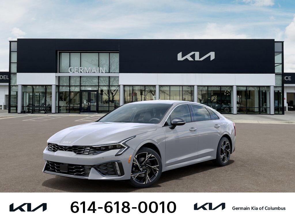 Wolf Gray 2026 Kia K5 GT-Line 8-Speed Automatic I4 This vehicle features 4-Wheel Disc Brakes, 6 Speakers, ABS brakes, Air Conditioning, Alloy wheels, AM/FM radio: SiriusXM, Auto High-beam Headlights, Automatic temperature control, Brake assist, Bumpers: body-color, Carpeted Floor Mats, Delay-off headlights, Driver door bin, Driver vanity mirror, Dual front impact airbags, Dual front side impact airbags, Electronic Stability Control, Emergency communication system: Kia Connect (includes 1 year free trial), Four wheel independent suspension, Front anti-roll bar, Front Bucket Seats, Front Center Armrest, Front dual zone A/C, Front fog lights, Front reading lights, Fully automatic headlights, Heated door mirrors, Heated Front Bucket Seats, Heated front seats, Illuminated entry, Knee airbag, Leather Shift Knob, Leather steering wheel, Low tire pressure warning, Navigation System, Occupant sensing airbag, Outside temperature display, Overhead airbag, Overhead console, Panic alarm, Passenger door bin, Passenger vanity mirror, Power door mirrors, Power driver seat, Power steering, Power windows, Radio data system, Radio: AM/FM Audio System, Rear anti-roll bar, Rear seat center armrest, Rear side impact airbag, Rear window defroster, Remote keyless entry, Security system, Speed control, Speed-sensing steering, Split folding rear seat, Sport steering wheel, Steering wheel mounted audio controls, Tachometer, Telescoping steering wheel, Tilt steering wheel, Traction control, Trip computer, Turn signal indicator mirrors, Variably intermittent wipers, and Wheels: 18" x 7.5J Gloss Black Machined Finish Alloy.
