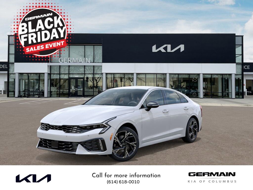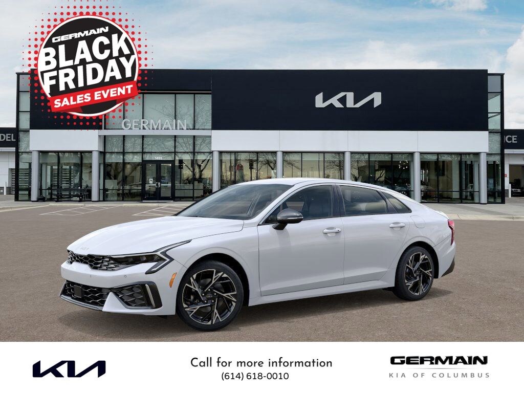 Snow White Pearl 2026 Kia K5 GT-Line FWD 8-Speed Automatic I4 This vehicle features 4-Wheel Disc Brakes, 6 Speakers, ABS brakes, Air Conditioning, Alloy wheels, AM/FM radio: SiriusXM, Auto High-beam Headlights, Automatic temperature control, Brake assist, Bumpers: body-color, Carpeted Floor Mats, Delay-off headlights, Driver door bin, Driver vanity mirror, Dual front impact airbags, Dual front side impact airbags, Electronic Stability Control, Emergency communication system: Kia Connect (includes 1 year free trial), Four wheel independent suspension, Front anti-roll bar, Front Bucket Seats, Front Center Armrest, Front dual zone A/C, Front fog lights, Front reading lights, Fully automatic headlights, Heated door mirrors, Heated Front Bucket Seats, Heated front seats, Heated steering wheel, Illuminated entry, Knee airbag, Leather Shift Knob, Leather steering wheel, Low tire pressure warning, Navigation System, Occupant sensing airbag, Outside temperature display, Overhead airbag, Overhead console, Panic alarm, Passenger door bin, Passenger vanity mirror, Power door mirrors, Power driver seat, Power steering, Power windows, Radio data system, Radio: AM/FM Audio System, Rear anti-roll bar, Rear seat center armrest, Rear side impact airbag, Rear window defroster, Remote keyless entry, Security system, Speed control, Speed-sensing steering, Split folding rear seat, Sport steering wheel, Steering wheel mounted audio controls, Tachometer, Telescoping steering wheel, Tilt steering wheel, Traction control, Trip computer, Turn signal indicator mirrors, Variably intermittent wipers, and Wheels: 18" x 7.5J Gloss Black Machined Finish Alloy.