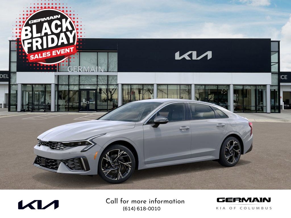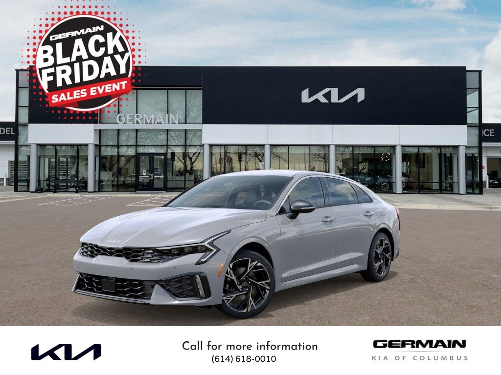 Wolf Gray 2026 Kia K5 GT-Line AWD 8-Speed Automatic I4 This vehicle features GT-Line Red Interior Package (SynTex Seat Trim), 4-Wheel Disc Brakes, 6 Speakers, ABS brakes, Air Conditioning, Alloy wheels, AM/FM radio: SiriusXM, Auto High-beam Headlights, Automatic temperature control, Brake assist, Bumpers: body-color, Carpeted Floor Mats, Delay-off headlights, Driver door bin, Driver vanity mirror, Dual front impact airbags, Dual front side impact airbags, Electronic Stability Control, Emergency communication system: Kia Connect (includes 1 year free trial), Four wheel independent suspension, Front anti-roll bar, Front Bucket Seats, Front Center Armrest, Front dual zone A/C, Front fog lights, Front reading lights, Fully automatic headlights, Heated door mirrors, Heated Front Bucket Seats, Heated front seats, Heated steering wheel, Illuminated entry, Knee airbag, Leather Shift Knob, Leather steering wheel, Low tire pressure warning, Navigation System, Occupant sensing airbag, Outside temperature display, Overhead airbag, Overhead console, Panic alarm, Passenger door bin, Passenger vanity mirror, Power door mirrors, Power driver seat, Power steering, Power windows, Radio data system, Radio: AM/FM Audio System, Rear anti-roll bar, Rear seat center armrest, Rear side impact airbag, Rear window defroster, Remote keyless entry, Security system, Speed control, Speed-sensing steering, Split folding rear seat, Sport steering wheel, Steering wheel mounted audio controls, Tachometer, Telescoping steering wheel, Tilt steering wheel, Traction control, Trip computer, Turn signal indicator mirrors, Variably intermittent wipers, and Wheels: 18" x 7.5J Gloss Black Machined Finish Alloy.