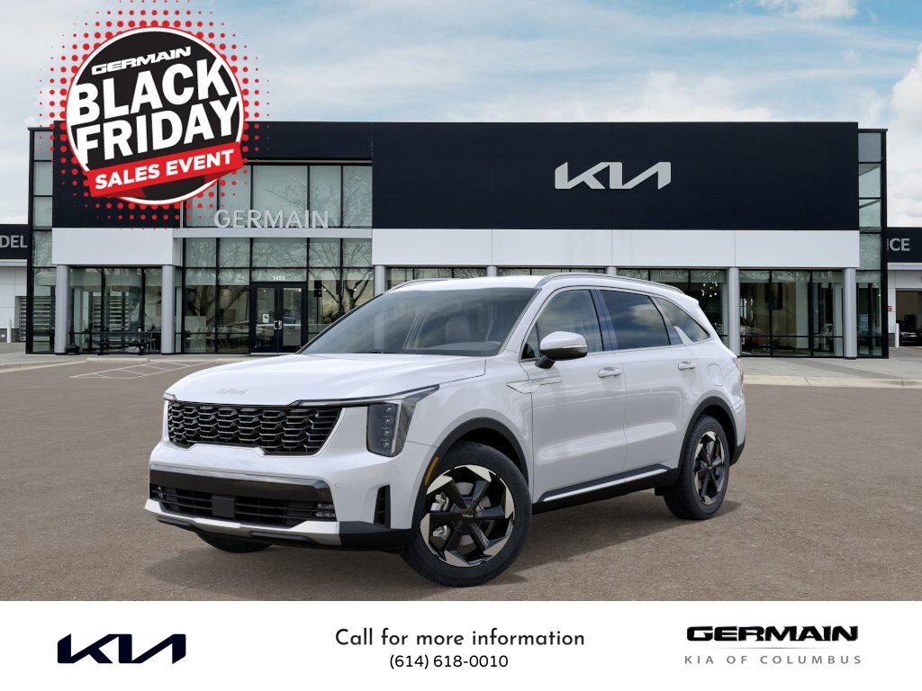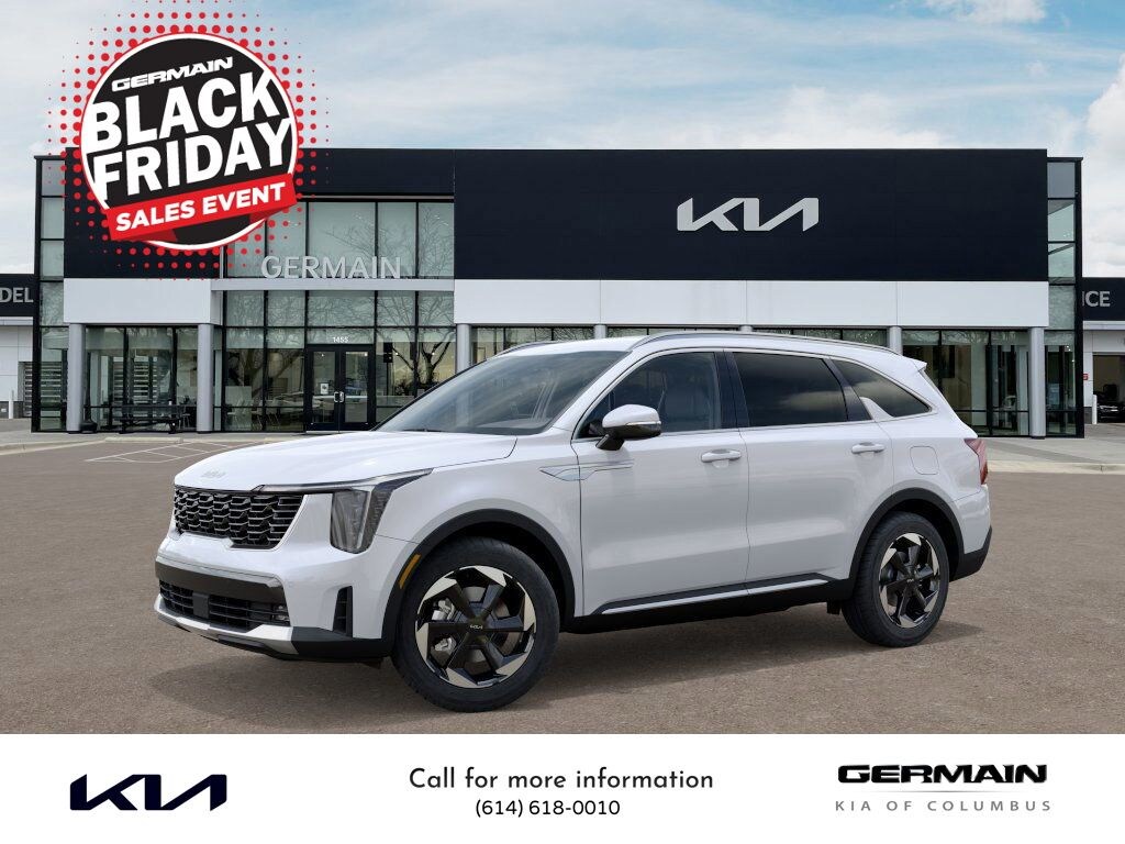 Snow White Pearl 2026 Kia Sorento Hybrid EX AWD 6-Speed Automatic 1.6L Turbo GDI 4-Cylinder This vehicle features 3rd row seats: split-bench, 4-Wheel Disc Brakes, 6 Speakers, ABS brakes, Air Conditioning, All Weather Floor Mats, Alloy wheels, AM/FM radio: SiriusXM, Apple CarPlay & Android Auto, Auto High-beam Headlights, Auto-dimming Rear-View mirror, Automatic temperature control, Brake assist, Bumpers: body-color, Delay-off headlights, Driver door bin, Driver vanity mirror, Dual front impact airbags, Dual front side impact airbags, Electronic Stability Control, Emergency communication system: 911 Connect, Exterior Parking Camera Rear, Four wheel independent suspension, Front anti-roll bar, Front Bucket Seats, Front Center Armrest, Front dual zone A/C, Front fog lights, Front reading lights, Fully automatic headlights, Heated door mirrors, Heated Front Bucket Seats, Heated front seats, Illuminated entry, Knee airbag, Leather steering wheel, Low tire pressure warning, Navigation System, Occupant sensing airbag, Outside temperature display, Overhead airbag, Overhead console, Panic alarm, Passenger door bin, Passenger vanity mirror, Power door mirrors, Power driver seat, Power Liftgate, Power passenger seat, Power steering, Power windows, Radio data system, Radio: AM/FM/SiriusXM Audio System, Rear anti-roll bar, Rear reading lights, Rear seat center armrest, Rear side impact airbag, Rear window defroster, Rear window wiper, Remote keyless entry, Security system, Speed control, Speed-sensing steering, Split folding rear seat, Spoiler, Steering wheel mounted audio controls, SynTex Artificial Leather Seat Trim, Tachometer, Telescoping steering wheel, Tilt steering wheel, Traction control, Trip computer, Turn signal indicator mirrors, Variably intermittent wipers, and Wheels: 19" Machine-Finished Aero Alloy.