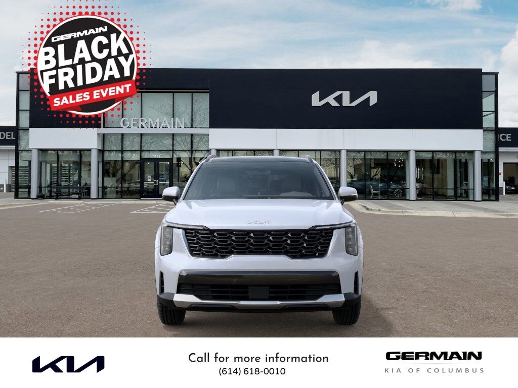 Glacial White Pearl 2026 Kia Sorento S FWD 8-Speed Automatic 2.5L I4 DGI DOHC 16V LEV3-SULEV30 191hp This vehicle features S Panoramic Sunroof Package (Full-Length One-Touch Panoroof w/Sliding Sunshade and LED Interior Lighting), 3rd row seats: split-bench, 4-Wheel Disc Brakes, 6 Speakers, ABS brakes, Air Conditioning, All Weather Floor Mats, Alloy wheels, AM/FM radio: SiriusXM, Apple CarPlay & Android Auto, Auto High-beam Headlights, Automatic temperature control, Brake assist, Bumpers: body-color, Delay-off headlights, Driver door bin, Driver vanity mirror, Dual front impact airbags, Dual front side impact airbags, Electronic Stability Control, Emergency communication system: 911 Connect, Exterior Parking Camera Rear, Four wheel independent suspension, Front anti-roll bar, Front Bucket Seats, Front Center Armrest, Front dual zone A/C, Front reading lights, Fully automatic headlights, Heated door mirrors, Heated Front Bucket Seats, Heated front seats, Illuminated entry, Knee airbag, Leather Shift Knob, Leather steering wheel, Low tire pressure warning, Occupant sensing airbag, Outside temperature display, Overhead airbag, Overhead console, Panic alarm, Passenger door bin, Passenger vanity mirror, Power door mirrors, Power driver seat, Power steering, Power windows, Radio data system, Radio: AM/FM Standard Sound System, Rear anti-roll bar, Rear reading lights, Rear seat center armrest, Rear side impact airbag, Rear window defroster, Rear window wiper, Remote keyless entry, Security system, Speed control, Speed-sensing steering, Split folding rear seat, Spoiler, Steering wheel mounted audio controls, SynTex Artificial Leather Seat Trim, Tachometer, Telescoping steering wheel, Tilt steering wheel, Traction control, Trip computer, Turn signal indicator mirrors, Variably intermittent wipers, and Wheels: 18" Gloss Black Alloy.