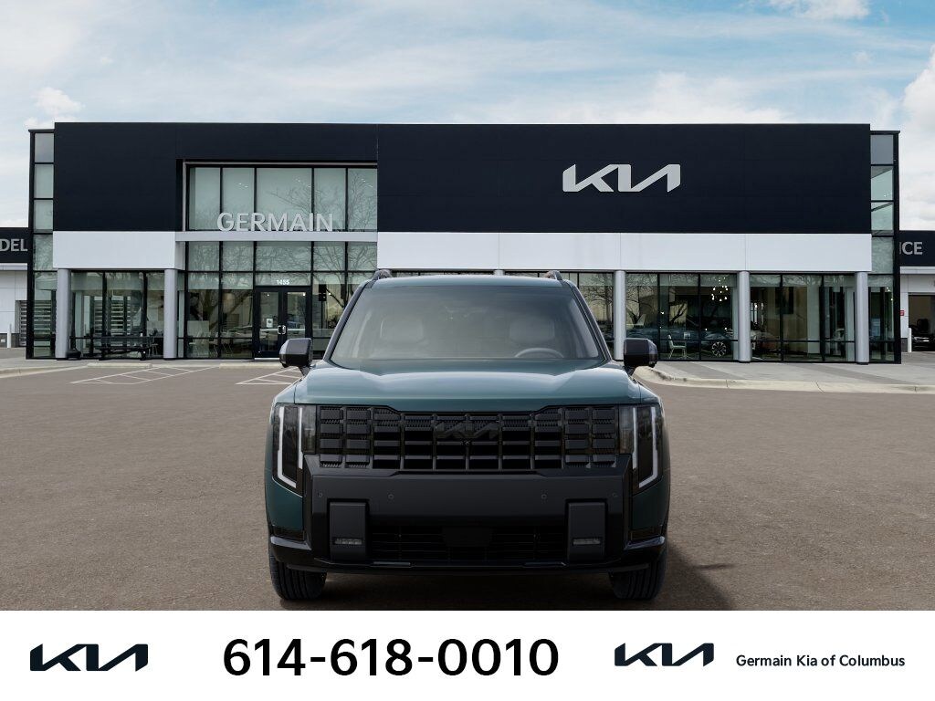 Black Jade Green 2027 Kia Telluride X-Line SX AWD 6-Speed Automatic 2.5L 4-Cylinder This vehicle features 10-Way Power Driver Seat with Thigh Support, 14 Speakers, 3rd row seats: split-bench, 4-Wheel Disc Brakes, ABS brakes, Air Conditioning, All Season Floor Liners, Alloy wheels, AM/FM radio: SiriusXM, Apple CarPlay & Android Auto, Audio memory, Auto High-beam Headlights, Auto-dimming door mirrors, Auto-dimming Rear-View mirror, Auto-leveling suspension, Automatic temperature control, Brake assist, Bumpers: body-color, Compass, Delay-off headlights, Driver door bin, Driver vanity mirror, Dual front impact airbags, Dual front side impact airbags, Electronic Stability Control, Emergency communication system: 911 Connect, Exterior Parking Camera Rear, Four wheel independent suspension, Front anti-roll bar, Front Bucket Seats, Front Center Armrest, Front dual zone A/C, Front fog lights, Front reading lights, Full SynTex Seat Trim, Fully automatic headlights, Garage door transmitter: HomeLink, Heated and Ventilated Front Bucket Seats, Heated door mirrors, Heated front seats, Heated steering wheel, HVAC memory, Illuminated entry, Knee airbag, Low tire pressure warning, Memory seat, Navigation System, Occupant sensing airbag, Outside temperature display, Overhead airbag, Overhead console, Panic alarm, Passenger door bin, Passenger vanity mirror, Power door mirrors, Power driver seat, Power Liftgate, Power moonroof, Power passenger seat, Power steering, Power windows, Radio data system, Radio: 14 Speaker Meridian Audio System, Rear air conditioning, Rear anti-roll bar, Rear reading lights, Rear side impact airbag, Rear window defroster, Rear window wiper, Reclining 3rd row seat, Remote keyless entry, Security system, Speed control, Speed-sensing steering, Split folding rear seat, Spoiler, Steering wheel mounted audio controls, Tachometer, Telescoping steering wheel, Tilt steering wheel, Traction control, Trip computer, Turn signal indicator mirrors, Variably intermittent wipers, Ventilated front seats, and Wheels: 21" x 8" Type An Aluminum Alloy.