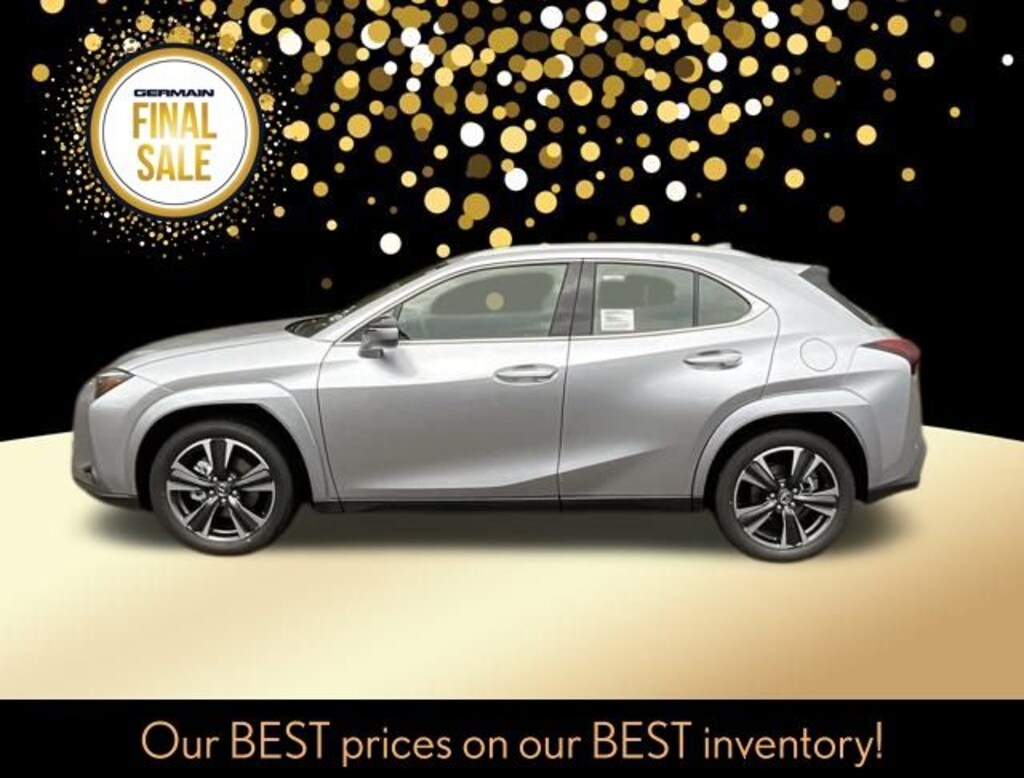 Iridium 2025 Lexus UX 300h Premium AWD eCVT 2.0L I4 DOHC 16V 3.605 Axle Ratio, 4-Wheel Disc Brakes, 6 Speakers, ABS brakes, Air Conditioning, Alloy wheels, AM/FM radio: SiriusXM, Apple CarPlay/Android Auto, Auto High-beam Headlights, Auto-dimming Rear-View mirror, Automatic temperature control, Brake assist, Bumpers: body-color, Cold Area Package, Compass, Delay-off headlights, Door Edge Film by 3M, Driver door bin, Driver vanity mirror, Dual front impact airbags, Dual front side impact airbags, Electronic Stability Control, Emergency communication system: Safety Connect (10-year trial), Exterior Parking Camera Rear, Four wheel independent suspension, Front anti-roll bar, Front Bucket Seats, Front Center Armrest, Front dual zone A/C, Front reading lights, Fully automatic headlights, Garage door transmitter: HomeLink, Heated & Ventilated Front Bucket Seats, Heated door mirrors, Heated front seats, Illuminated Door Sills, Illuminated entry, Knee airbag, Leather Shift Knob, Leather steering wheel, Lexus Premium Sound System, Low tire pressure warning, Navigation System, NuLuxe Seat Trim, Occupant sensing airbag, Outside temperature display, Overhead airbag, Paint Protection Film by 3M, Panic alarm, Passenger door bin, Passenger vanity mirror, Power door mirrors, Power driver seat, Power Liftgate, Power moonroof, Power passenger seat, Power steering, Power windows, Premium Package, Premium Paint (PJ), Radio data system, Rain sensing wipers, Rear anti-roll bar, Rear Bumper Applique, Rear reading lights, Rear side impact airbag, Rear window defroster, Rear window wiper, Remote keyless entry, Security system, Speed control, Speed-sensing steering, Split folding rear seat, Spoiler, Steering wheel mounted audio controls, Tachometer, Telescoping steering wheel, Tilt steering wheel, Traction control, Trip computer, Turn signal indicator mirrors, Variably intermittent wipers, Ventilated front seats, Wheels: 18" x 7" 5-Spoke Dark Gray Metallic, Wireless Charger.