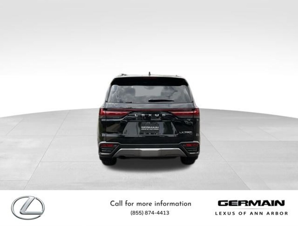 Caviar 2025 Lexus LX 4WD 10-Speed Automatic V6 V6, Black Semi Anil Leather, 10 Speakers, 3rd row seats: split-bench, 4-Wheel Disc Brakes, ABS brakes, Accessory Package (P3), Adaptive suspension, Air Conditioning, Alloy wheels, AM/FM radio: SiriusXM, Apple CarPlay/Android Auto, Auto High-beam Headlights, Auto tilt-away steering wheel, Auto-dimming door mirrors, Auto-dimming Rear-View mirror, Auto-leveling suspension, Automatic temperature control, Brake assist, Bumpers: body-color, Compass, Delay-off headlights, Door Edge Film by 3M, Driver door bin, Driver vanity mirror, Dual front impact airbags, Dual front side impact airbags, Electronic Stability Control, Emergency communication system: Safety Connect (up to 10-year trial subscription included), Exterior Parking Camera Rear, Front anti-roll bar, Front Bucket Seats, Front Center Armrest, Front dual zone A/C, Front fog lights, Front reading lights, Front wheel independent suspension, Fully automatic headlights, Garage door transmitter: HomeLink, Genuine wood console insert, Genuine wood door panel insert, Headlight cleaning, Heads-Up Display, Heated & Ventilated Front Seats, Heated door mirrors, Heated front seats, Heated rear seats, Heated steering wheel, Illuminated entry, Leather Shift Knob, Leather steering wheel, Low tire pressure warning, Mark Levinson 25-Speaker Surround Sound Audio, Memory seat, Navigation system: Drive Connect Cloud Navigation (3-year trial subscription included), Occupant sensing airbag, Outside temperature display, Overhead airbag, Overhead console, Overtrail 3-Row Package, Paint Protection Film by 3M, Panic alarm, Passenger door bin, Passenger vanity mirror, Power door mirrors, Power driver seat, Power Liftgate, Power moonroof, Power passenger seat, Power steering, Power windows, Radio data system, Radio: Lexus Interface, Rain sensing wipers, Rear air conditioning, Rear dual zone A/C, Rear reading lights, Rear seat center armrest, Rear side impact airbag, Rear window defroster, Rear window wiper, Reclining 3rd row seat, Remote keyless entry, Security system, Semi-Aniline Leather Seat Trim, Side Puddle Lamps, Speed control, Speed-sensing steering, Split folding rear seat, Spoiler, Steering wheel memory, Steering wheel mounted audio controls, Tachometer, Telescoping steering wheel, Tilt steering wheel, Traction control, Trip computer, Turn signal indicator mirrors, Variably intermittent wipers, Ventilated front seats, Ventilated rear seats, Voltmeter, Wheels: 18" Matte Gray Metallic Alloy, V6, Black Semi Anil Leather.