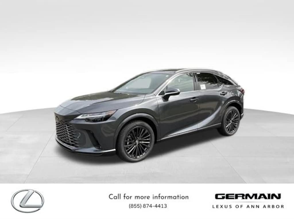 Gray 2025 Lexus RX 350 Premium AWD 8-Speed Automatic 2.4L I4 Turbo AWD, Black Nuluxe Artificial Leather, 12 Speakers, 19" 5-Spoke Alloy Wheels, 4-Wheel Disc Brakes, 8-Way Power Driver & Front Passenger Seat Adjusters, ABS brakes, Air Conditioning, Alloy wheels, AM/FM radio: SiriusXM, Anti-whiplash front head restraints, Auto High-beam Headlights, Auto tilt-away steering wheel, Auto-dimming door mirrors, Auto-dimming Rear-View mirror, Automatic temperature control, Brake assist, Bumpers: body-color, Compass, Convenience Package, Delay-off headlights, Door Edge Film by 3M, Driver door bin, Driver vanity mirror, Dual front impact airbags, Dual front side impact airbags, Electronic Stability Control, Emergency communication system: Safety Connect (10-year trial), Exterior Parking Camera Rear, Four wheel independent suspension, Front anti-roll bar, Front Bucket Seats, Front Center Armrest, Front dual zone A/C, Front fog lights, Front reading lights, Fully automatic headlights, Garage door transmitter: HomeLink, Genuine wood console insert, Heated & Ventilated Front Bucket Seats, Heated door mirrors, Heated front seats, Heated steering wheel, Illuminated entry, Leather Shift Knob, Leather steering wheel, Low tire pressure warning, Memory seat, Navigation System, NuLuxe Seat Trim, Occupant sensing airbag, Outside temperature display, Overhead airbag, Overhead console, Panic alarm, Passenger door bin, Passenger vanity mirror, Power door mirrors, Power driver seat, Power Liftgate, Power moonroof, Power passenger seat, Power Rear Door w/Kick Sensor, Power steering, Power windows, Premium Package, Premium Paint (PJ), Radio data system, Radio: Lexus Interface w/14" HD Touchscreen Display, Radio: Lexus Interface w/9.8" HD Touchscreen Display, Rain sensing wipers, Rear air conditioning, Rear anti-roll bar, Rear reading lights, Rear seat center armrest, Rear side impact airbag, Rear window defroster, Rear window wiper, Remote keyless entry, Security system, Speed control, Speed-sensing steering, Split folding rear seat, Spoiler, Steering wheel memory, Steering wheel mounted audio controls, Tachometer, Telescoping steering wheel, Tilt steering wheel, Traction control, Trip computer, Turn signal indicator mirrors, Variably intermittent wipers, Ventilated front seats, Wheels: 21" 20-Spoke Alloy w/Dark Gray Met Finish, Wireless Apple CarPlay/Wireless Android Auto, AWD, Black Nuluxe Artificial Leather.