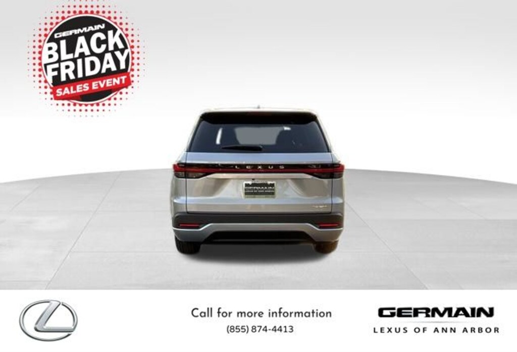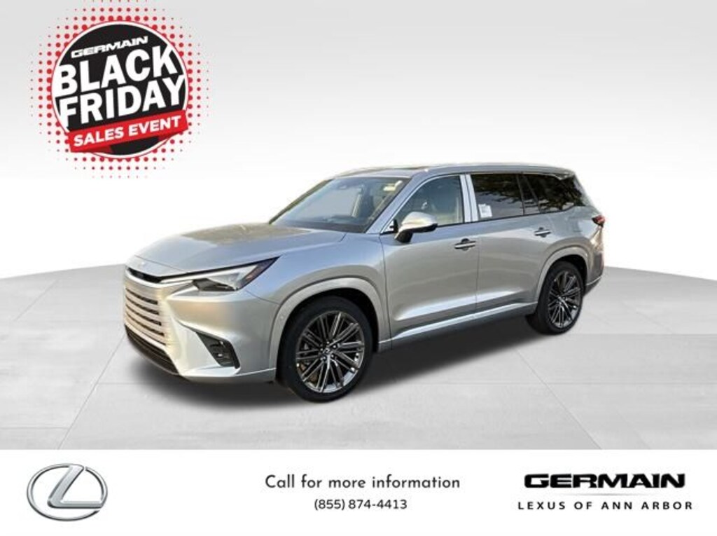 Celestial Silver 2025 Lexus TX 350 Luxury AWD 8-Speed Automatic 2.4L I4 Turbocharged 12 Speakers, 3rd row seats: split-bench, 4-Wheel Disc Brakes, ABS brakes, Accessory Package (2T), Advanced Park w/Remote Park, Air Conditioning, All-Weather Cargo Mat, All-Weather Floor Liners, Alloy wheels, AM/FM radio, Auto High-beam Headlights, Auto tilt-away steering wheel, Auto-dimming door mirrors, Auto-dimming Rear-View mirror, Automatic temperature control, Brake assist, Bumpers: body-color, Captains Chair Package, Cargo Net, Convenience Package, Delay-off headlights, Digital Key & SmartAccess Card Key, Digital Rearview Mirror, Door Edge Film, Driver door bin, Driver vanity mirror, Dual front impact airbags, Dual front side impact airbags, Electronic Stability Control, Emergency communication system: Safety Connect (10-year trial), Exterior Parking Camera Rear, Four wheel independent suspension, Front anti-roll bar, Front Bucket Seats, Front Center Armrest, Front dual zone A/C, Front fog lights, Front reading lights, Fully automatic headlights, Garage door transmitter: HomeLink, Head-Up Display, Heated & Ventilated Front Seats, Heated door mirrors, Heated front seats, Heated rear seats, Heated steering wheel, Illuminated Cargo Sills, Illuminated Door Sills, Illuminated entry, Knee airbag, Lane Keeping System, Leather Shift Knob, Leather steering wheel, Low tire pressure warning, Mark Levinson 21-Speaker Premium Surround Sound, Memory seat, Navigation system: Drive Connect Cloud Navigation (3-year trial subscription included), Occupant sensing airbag, Outside temperature display, Overhead airbag, Panic alarm, Panoramic View Monitor, Passenger door bin, Passenger vanity mirror, Power door mirrors, Power driver seat, Power Liftgate, Power moonroof, Power passenger seat, Power steering, Power windows, Radio data system, Radio: Lexus Interface, Rain sensing wipers, Rear air conditioning, Rear anti-roll bar, Rear Captain Seats, Rear reading lights, Rear seat center armrest, Rear window defroster, Rear window wiper, Reclining 3rd row seat, Remote keyless entry, Security system, Semi-Aniline Synthetic Suede Seat Trim, Speed control, Speed-sensing steering, Split folding rear seat, Spoiler, Steering wheel memory, Steering wheel mounted audio controls, Tachometer, Technology Package, Telescoping steering wheel, Tilt steering wheel, Traction control, Trip computer, Turn signal indicator mirrors, Variably intermittent wipers, Ventilated front seats, Wheels: 20" Multi-Spoke Alloy, Wheels: 22" Alloy, Wireless Apple CarPlay/Wireless Android Auto.