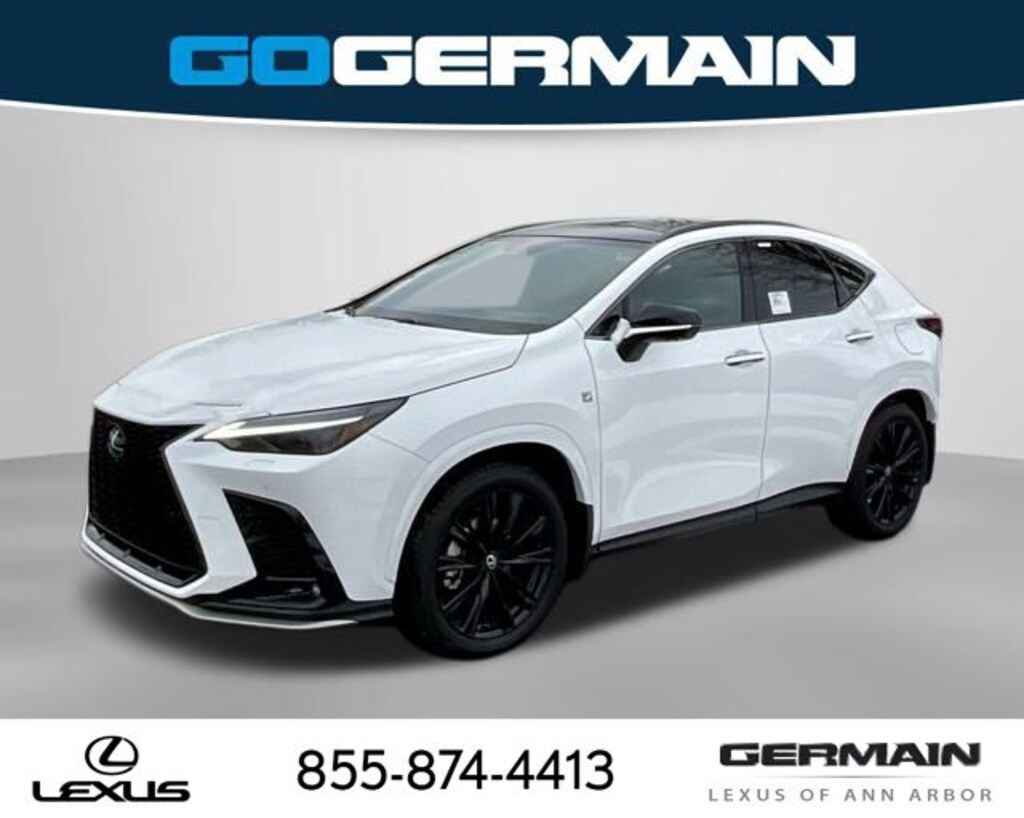 Ultra White 2026 Lexus NX 350 F SPORT Handling AWD 8-Speed Automatic (ECT-i) 2.4L I4 DOHC 16V 10 Speakers, 10" Head-Up Display, 20" Wheels, 4-Wheel Disc Brakes, ABS brakes, Accessory Package, Adaptive suspension, Air Conditioning, All-Weather Cargo Mat, All-Weather Floor Liners, Alloy Wheel Locks with Triple Nickel Chrome Plating, Alloy wheels, AM/FM radio: SiriusXM, Auto High-beam Headlights, Auto tilt-away steering wheel, Auto-dimming door mirrors, Auto-dimming Rear-View mirror, Automatic temperature control, Brake assist, Bumpers: body-color, Delay-off headlights, Digital Rearview Mirror, Driver door bin, Driver vanity mirror, Dual front impact airbags, Dual front side impact airbags, Electronic Stability Control, Emergency communication system: Safety Connect (up to 10-year trial subscription included), Exterior Parking Camera Rear, F SPORT Handling Luxury Package, F SPORT Heated Front Seats, F SPORT Key Gloves with Embossed Logo, Four wheel independent suspension, Front anti-roll bar, Front Bucket Seats, Front Center Armrest, Front Cross-Traffic Alert and Lane Change Assist, Front dual zone A/C, Front fog lights, Front reading lights, Fully automatic headlights, Garage door transmitter: HomeLink, Heads-Up Display, Heated door mirrors, Heated front seats, Heated steering wheel, Illuminated entry, Knee airbag, Leather Shift Knob, Leather steering wheel, Lexus Interface with 14" Touchscreen Display, Lexus Interface with 9.8" Touchscreen Display, Lexus Memory System, Low tire pressure warning, Mudguards, Navigation system: Drive Connect Cloud Navigation (subscription required), NuLuxe Seat Trim, Occupant sensing airbag, Outside temperature display, Overhead airbag, Overhead console, Panic alarm, Panorama Glass Roof, Panoramic View Monitor, Passenger door bin, Passenger vanity mirror, Power Back Door with Kick Sensor, Power door mirrors, Power driver seat, Power Liftgate, Power passenger seat, Power steering, Power windows, Radio data system, Radio: 10-Speaker Lexus Premium Sound System, Rain sensing wipers, Rear anti-roll bar, Rear reading lights, Rear seat center armrest, Rear window defroster, Rear window wiper, Remote keyless entry, Security system, Speed control, Speed-sensing steering, Speed-Sensitive Wipers, Split folding rear seat, Spoiler, Sport steering wheel, Steering wheel mounted audio controls, Tachometer, Telescoping steering wheel, Thematic Ambient Illumination, Tilt steering wheel, Traction control, Trip computer, Turn signal indicator mirrors, Variably intermittent wipers, Ventilated Front Seats, Wheels: F SPORT 20" Split 5-Spoke Alloy, Wireless Apple CarPlay/Wireless Android Auto, Wireless Phone Charger.