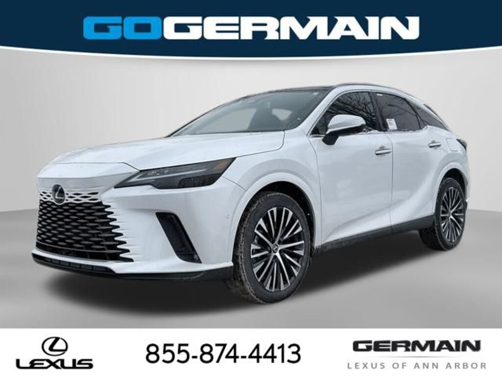 Pear 2026 Lexus RX 350h AWD Continuously Variable (ECVT) 2.5L I4 DOHC 16V 10" Color Head-Up Display, 12 Speakers, 4-Wheel Disc Brakes, ABS brakes, Accessory Package, Air Conditioning, All-Weather Cargo Mat, All-Weather Floor Liners, Alloy wheels, AM/FM radio: SiriusXM, Anti-whiplash front head restraints, Auto High-beam Headlights, Auto tilt-away steering wheel, Auto-dimming door mirrors, Auto-dimming Rear-View mirror, Automatic temperature control, Brake assist, Bumpers: body-color, Compass, Convenience Package, Delay-off headlights, Digital Key, Digital Rearview Mirror, Door Edge Film by 3M, Driver door bin, Driver vanity mirror, Dual front impact airbags, Dual front side impact airbags, Electronic Stability Control, Emergency communication system: Safety Connect (5-year minimum), Exterior Parking Camera Rear, Four wheel independent suspension, Front anti-roll bar, Front Bucket Seats, Front Center Armrest, Front Cross-Traffic Alert, Front dual zone A/C, Front fog lights, Front reading lights, Fully automatic headlights, Garage door transmitter: HomeLink, Heated and Ventilated Front Bucket Seats, Heated door mirrors, Heated front seats, Heated steering wheel, Illuminated Cargo Sills, Illuminated Door Sills, Illuminated entry, Lane Change Assist, Leather Seat Trim, Leather Shift Knob, Leather steering wheel, Lexus Interface with 14" Touchscreen Display, Lexus Multimedia Screen Protector, Low tire pressure warning, Memory seat, Navigation System, Occupant sensing airbag, Outside temperature display, Overhead airbag, Overhead console, Panic alarm, Panorama Glass Roof and Roof Rails, Passenger door bin, Passenger vanity mirror, Power door mirrors, Power driver seat, Power Liftgate, Power passenger seat, Power Rear Door with Kick Sensor, Power steering, Power windows, Premium+ Grade, Radio data system, Radio: 12-Speaker Lexus Premium Sound System, Rain sensing wipers, Rear air conditioning, Rear anti-roll bar, Rear Bumper Applique, Rear reading lights, Rear seat center armrest, Rear side impact airbag, Rear window defroster, Rear window wiper, Remote keyless entry, Security system, Side Puddle Lamps, Speed control, Speed-sensing steering, Split folding rear seat, Spoiler, Steering wheel memory, Steering wheel mounted audio controls, Technology Package, Telescoping steering wheel, Tilt steering wheel, Traction control, Trip computer, Turn signal indicator mirrors, Variably intermittent wipers, Ventilated front seats, Wheels: 21" 20-Spoke Alloy, Wireless Apple CarPlay/Wireless Android Auto.