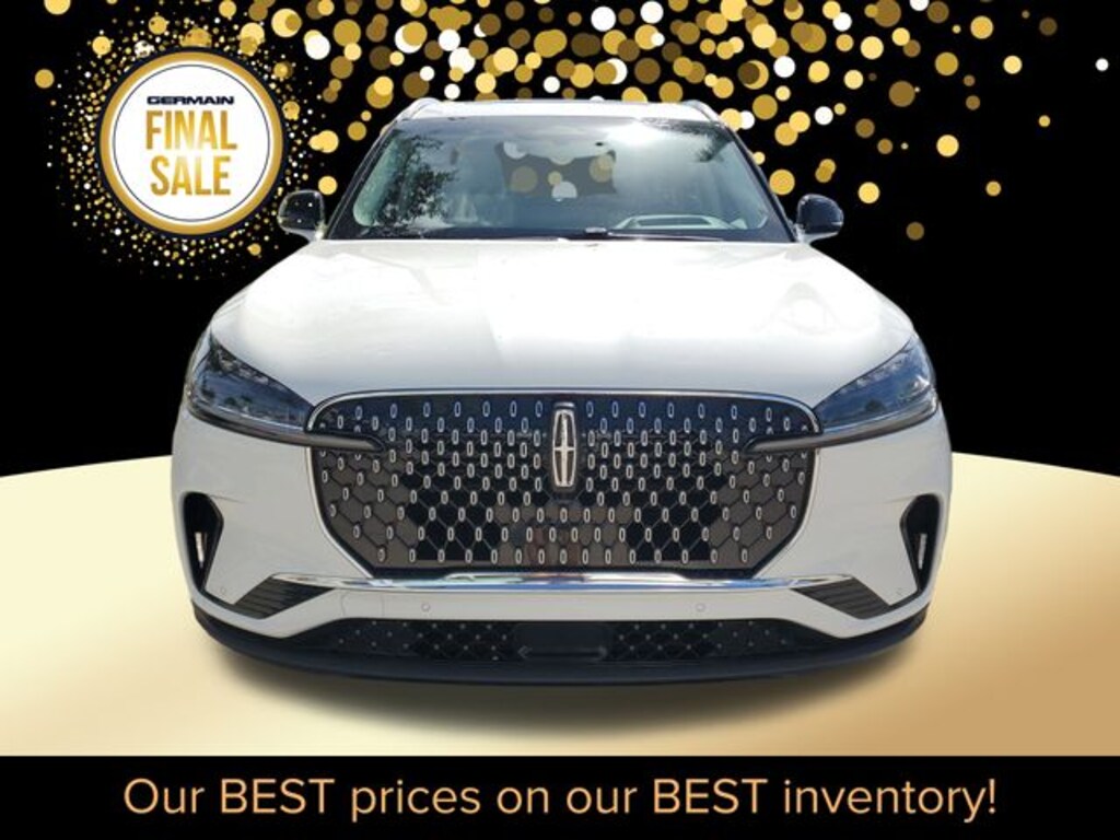 14 Speakers, 3rd row seats: split-bench, 4-Wheel Disc Brakes, 40/Mini Console/40 Dual Captain's Chairs, ABS brakes, Adaptive suspension, Advanced Heads-Up Display, Air Conditioning, Alloy wheels, AM/FM radio: SiriusXM, Apple CarPlay/Android Auto, Audio memory, Auto Air Refresh, Auto High-beam Headlights, Auto-dimming door mirrors, Auto-dimming Rear-View mirror, Automatic temperature control, Brake assist, Bumpers: body-color, Compass, Delay-off headlights, Driver door bin, Driver vanity mirror, Dual front impact airbags, Dual front side impact airbags, Electronic Stability Control, Emergency communication system: 911 Assist, Equipment Group 200A, Four wheel independent suspension, Front anti-roll bar, Front Bucket Seats, Front Center Armrest, Front dual zone A/C, Front reading lights, Fully automatic headlights, Garage door transmitter, Genuine wood console insert, Genuine wood dashboard insert, Heads-Up Display, Heated door mirrors, Heated front seats, Heated steering wheel, HVAC memory, Illuminated entry, Knee airbag, Leather steering wheel, Lincoln BlueCruise Equipped (4-Years Included), Lincoln Digital Experience, Low tire pressure warning, Memory seat, Navigation system: Connected Navigation (1-year trial), Occupant sensing airbag, Outside temperature display, Overhead airbag, Overhead console, Panic alarm, Passenger door bin, Passenger vanity mirror, Power door mirrors, Power driver seat, Power Liftgate, Power moonroof: Panoramic Vista Roof, Power passenger seat, Power steering, Power windows, Premium Lthr Heated/Ventilated Fnt Captain's Chairs, Radio data system, Radio: Revel Audio System w/14 Speakers, Rain sensing wipers, Rear air conditioning, Rear anti-roll bar, Rear audio controls, Rear dual zone A/C, Rear reading lights, Rear window defroster, Rear window wiper, Remote keyless entry, Security system, SiriusXM, Speed control, Speed-Sensitive Wipers, Split folding rear seat, Spoiler, Steering wheel memory, Steering wheel mounted A/C controls, Steering wheel mounted audio controls, Tachometer, Telescoping steering wheel, Tilt steering wheel, Traction control, Trip computer, Turn signal indicator mirrors, Variably intermittent wipers, Ventilated front seats, Wheels: 21" Bright-Machined Aluminum, Wireless Charging Pad. Price includes: $2000 - Wishlist Bonus Cash. Exp. 01/02/2026 $5000 - Retail Customer Cash. Exp. 01/05/2026