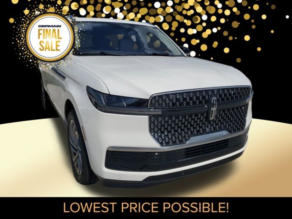 26mm Engine Radiator, 28 Speakers, 2nd Row Heated & Ventilated Dual Captain's Chair, 3rd row seats: split-bench, 4-Wheel Disc Brakes, ABS brakes, Adaptive suspension, Adjustable pedals, Air Conditioning, Alloy wheels, AM/FM radio: SiriusXM with 360L, Apple CarPlay/Android Auto, Audio memory, Auto High-beam Headlights, Auto Htd & Ventilated Premium Lthr Captain's Chair, Auto Start-Stop Technology, Auto tilt-away steering wheel, Auto-dimming door mirrors, Auto-dimming Rear-View mirror, Auto-leveling suspension, Automatic temperature control, Brake assist, Bumpers: body-color, Compass, Delay-off headlights, Driver door bin, Driver vanity mirror, Driver's Seat Mounted Armrest, Dual front impact airbags, Dual front side impact airbags, Electronic Stability Control, Emergency communication system: 911 Assist, Equipment Group 202A Reserve II, Exterior Parking Camera Rear, Four wheel independent suspension, Front anti-roll bar, Front Bucket Seats, Front dual zone A/C, Front reading lights, Fully automatic headlights, Garage door transmitter, Heated door mirrors, Heated front seats, Heated rear seats, Heated steering wheel, Heavy-Duty Trailer Tow Package, HVAC memory, Illuminated entry, Leather steering wheel, Lincoln Connect, Lincoln Premium Connectivity, Low tire pressure warning, Memory seat, Navigation system: Connected Navigation (1-year trial), Occupant sensing airbag, Outside temperature display, Overhead airbag, Overhead console, Panic alarm, Passenger door bin, Passenger seat mounted armrest, Passenger vanity mirror, Pedal memory, Power adjustable front head restraints, Power adjustable rear head restraints, Power door mirrors, Power driver seat, Power moonroof, Power passenger seat, Power steering, Power windows, Radio data system, Radio: Revel Ultima 3D AM/FM/HD Audio System, Rain sensing wipers, Rear air conditioning, Rear anti-roll bar, Rear audio controls, Rear reading lights, Rear window defroster, Rear window wiper, Reclining 3rd row seat, Remote keyless entry, Security system, SiriusXM w/360L, Speed control, Speed-sensing steering, Speed-Sensitive Wipers, Split folding rear seat, Spoiler, Steering wheel memory, Steering wheel mounted audio controls, Tachometer, Telescoping steering wheel, Tilt steering wheel, Traction control, Trailer Brake Controller, Trip computer, Turn signal indicator mirrors, Variably intermittent wipers, Ventilated front seats, Wheels: 22" Dark Tarnished Aluminum. Price includes: $2000 - Wishlist Bonus Cash. Exp. 01/02/2026