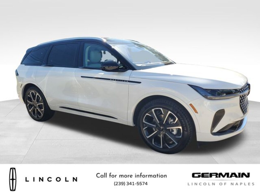 10 Speakers, 110V Power Converter, 4-Wheel Disc Brakes, ABS brakes, Adaptive suspension, Air Conditioning, Alloy wheels, AM/FM radio: SiriusXM with 360L, Apple CarPlay/Android Auto, Auto Air Refresh, Auto High-beam Headlights, Auto tilt-away steering wheel, Auto-dimming Rear-View mirror, Automatic temperature control, BlueCruise Equipped (4-Years Included), Brake assist, Bumpers: body-color, Compass, Delay-off headlights, Digital Scent, Driver door bin, Driver vanity mirror, Dual front impact airbags, Dual front side impact airbags, Electronic Stability Control, Emergency communication system: 911 Assist, Equipment Group 203A Reserve III, Exterior Parking Camera Rear, Four wheel independent suspension, Front anti-roll bar, Front Bucket Seats, Front Center Armrest w/Storage, Front dual zone A/C, Front reading lights, Fully automatic headlights, Garage door transmitter, Hands-Free Power Liftgate, Heated door mirrors, Heated front seats, Heated steering wheel, Illuminated entry, Knee airbag, Leather steering wheel, Lincoln Connectivity Package, Lincoln Digital Experience, Low tire pressure warning, Memory seat, Navigation System, Occupant sensing airbag, Outside temperature display, Overhead airbag, Overhead console, Panic alarm, Panoramic Vista Roof with Powershade, Passenger door bin, Passenger vanity mirror, Power door mirrors, Power driver seat, Power Liftgate, Power passenger seat, Power steering, Power windows, Premium Leather Trimmed Captain's Chairs, Premium Leather-Trimmed Heated/Ventilated Captain's Chairs, Radio data system, Radio: AM/FM Revel Audio System, Radio: AM/FM Revel Ultima 3D Audio System, Rain sensing wipers, Rear anti-roll bar, Rear Heated Seats with Switch Control, Rear reading lights, Rear seat center armrest, Rear window defroster, Rear window wiper, Remote keyless entry, Security system, SiriusXM with 360L, Speed control, Speed-sensing steering, Speed-Sensitive Wipers, Split folding rear seat, Spoiler, Steering wheel memory, Steering wheel mounted audio controls, Tachometer, Telescoping steering wheel, Tilt steering wheel, Traction control, Trip computer, Turn signal indicator mirrors, Variably intermittent wipers, Ventilated front seats, Wheels: 21" Bright Machined Aluminum.