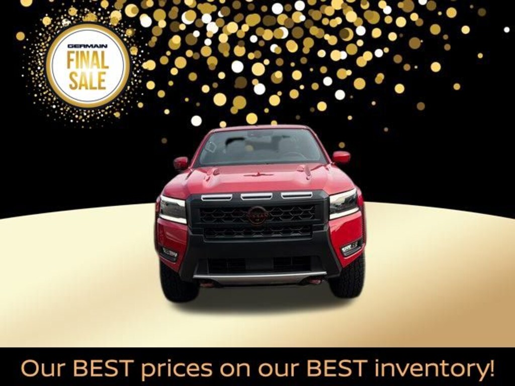 4WD, 17" Painted Alloy Wheels, 3.692 Axle Ratio, 4-Wheel Disc Brakes, 6 Speakers, ABS brakes, Air Conditioning, Alloy wheels, AM/FM radio: SiriusXM, Anti-whiplash front head restraints, Auto High-beam Headlights, Automatic temperature control, Blind Spot Warning, Brake assist, Bumpers: body-color, Delay-off headlights, Driver door bin, Driver vanity mirror, Dual front impact airbags, Dual front side impact airbags, Electronic Stability Control, Electronic Tailgate Lock, Emergency communication system, Essentials Kit, Front anti-roll bar, Front Bucket Seats, Front Center Armrest, Front dual zone A/C, Front fog lights, Front reading lights, Front wheel independent suspension, Fully automatic headlights, Heated Front Bucket Seats, Heated front seats, Heated steering wheel, Illuminated entry, Knee airbag, Leather steering wheel, Low tire pressure warning, Mud Flaps, Occupant sensing airbag, Off-Road Style Step Rails, Overhead airbag, Overhead console, Panic alarm, Passenger door bin, Passenger vanity mirror, Power door mirrors, Power driver seat, Power passenger seat, Power steering, Power windows, PRO Embroidered Premium Cloth Seat Trim, PRO-4X Carpeted Floor Mats, PRO-4X Convenience Package, Radio data system, Radio: SXM/AM/FM/AUX/USB Audio System, Rear anti-roll bar, Rear seat center armrest, Rear side impact airbag, Rear step bumper, Remote keyless entry, Security system, Speed control, Speed-sensing steering, Split folding rear seat, Steering wheel mounted audio controls, Tachometer, Telescoping steering wheel, Tilt steering wheel, Tow Package (T11), Traction control, Trip computer, Variably intermittent wipers, Voltmeter, Wireless Apple CarPlay/Wireless Android Auto, 4WD. Price excludes tax, tags, title, licensing, dealer added accesories and dealer fees. Price does include the following rebates. Customer must finance at standard rates through NMAC to receive internet price. See dealer to confirm eligibility:$2500 - Nissan Customer Cash. Exp. 01/05/2026