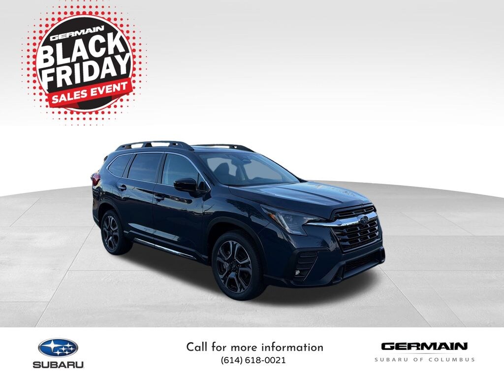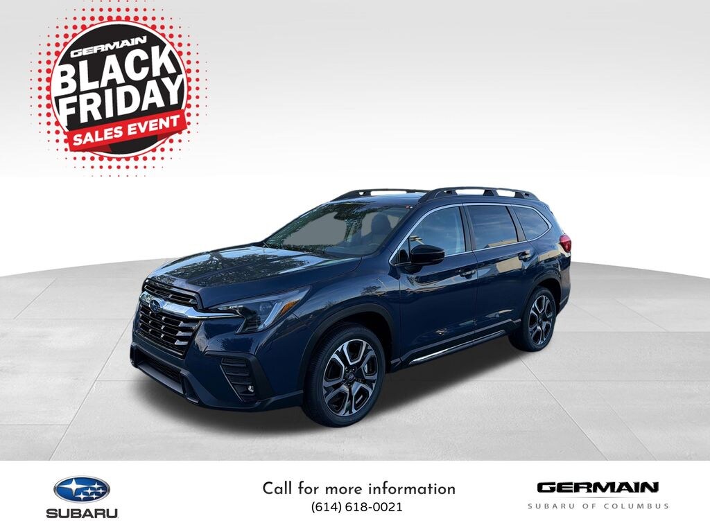 14 Speakers, 3rd row seats: bench, 4-Wheel Disc Brakes, ABS brakes, Air Conditioning, Alloy wheels, AM/FM radio: SiriusXM with 360L, Apple CarPlay & Android Auto, Auto High-beam Headlights, Auto-dimming Rear-View mirror, Automatic temperature control, Brake assist, Bumpers: body-color, Compass, Delay-off headlights, Driver door bin, Driver vanity mirror, Dual front impact airbags, Dual front side impact airbags, Electronic Stability Control, Emergency communication system: MySubaru Safety (3-year free trial), Exterior Parking Camera Rear, Four wheel independent suspension, Front anti-roll bar, Front Bucket Seats, Front Center Armrest, Front dual zone A/C, Front fog lights, Front reading lights, Fully automatic headlights, Garage door transmitter: HomeLink, harman/kardon® Speakers, Heated door mirrors, Heated Front Bucket Seats, Heated front seats, Heated rear seats, Heated steering wheel, Illuminated entry, Knee airbag, Leather Shift Knob, Leather steering wheel, Low tire pressure warning, Memory seat, Navigation System, Occupant sensing airbag, Outside temperature display, Overhead airbag, Overhead console, Panic alarm, Passenger door bin, Passenger vanity mirror, Perforated Leather-Trimmed Upholstery, Power door mirrors, Power driver seat, Power Liftgate, Power moonroof, Power passenger seat, Power steering, Power windows, Radio data system, Radio: Subaru 11.6" Multimedia System w/Navigation, Rear air conditioning, Rear anti-roll bar, Rear reading lights, Rear seat center armrest, Rear window defroster, Rear window wiper, Reclining 3rd row seat, Remote keyless entry, Security system, Speed control, Speed-sensing steering, Split folding rear seat, Spoiler, Steering wheel mounted audio controls, Tachometer, Telescoping steering wheel, Tilt steering wheel, Traction control, Trip computer, Turn signal indicator mirrors, Variably intermittent wipers, Wheels: 20" x 7.5 J Dk Gray Alloy w/Machine Finish. AWD Cosmic Blue Pearl Lineartronic CVT 2.4L 4-Cylinder DOHC 16V