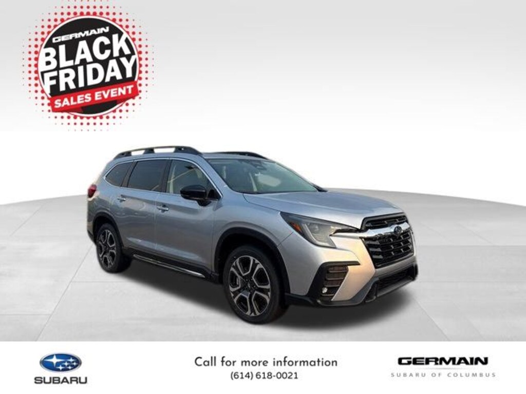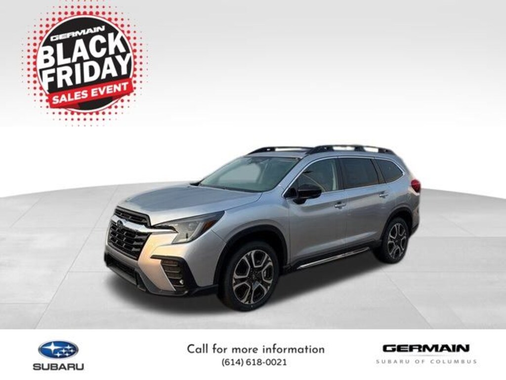 14 Speakers, 3rd row seats: bench, 4-Wheel Disc Brakes, ABS brakes, Air Conditioning, Alloy wheels, AM/FM radio: SiriusXM with 360L, Apple CarPlay & Android Auto, Auto High-beam Headlights, Auto-dimming Rear-View mirror, Automatic temperature control, Brake assist, Bumpers: body-color, Compass, Delay-off headlights, Driver door bin, Driver vanity mirror, Dual front impact airbags, Dual front side impact airbags, Electronic Stability Control, Emergency communication system: MySubaru Safety (3-year free trial), Exterior Parking Camera Rear, Four wheel independent suspension, Front anti-roll bar, Front Bucket Seats, Front Center Armrest, Front dual zone A/C, Front fog lights, Front reading lights, Fully automatic headlights, Garage door transmitter: HomeLink, harman/kardon® Speakers, Heated door mirrors, Heated Front Bucket Seats, Heated front seats, Heated rear seats, Heated steering wheel, Illuminated entry, Knee airbag, Leather Shift Knob, Leather steering wheel, Low tire pressure warning, Memory seat, Navigation System, Occupant sensing airbag, Outside temperature display, Overhead airbag, Overhead console, Panic alarm, Passenger door bin, Passenger vanity mirror, Perforated Leather-Trimmed Upholstery, Power door mirrors, Power driver seat, Power Liftgate, Power moonroof, Power passenger seat, Power steering, Power windows, Radio data system, Radio: Subaru 11.6" Multimedia System w/Navigation, Rear air conditioning, Rear anti-roll bar, Rear reading lights, Rear seat center armrest, Rear window defroster, Rear window wiper, Reclining 3rd row seat, Remote keyless entry, Security system, Speed control, Speed-sensing steering, Split folding rear seat, Spoiler, Steering wheel mounted audio controls, Tachometer, Telescoping steering wheel, Tilt steering wheel, Traction control, Trip computer, Turn signal indicator mirrors, Variably intermittent wipers, Wheels: 20" x 7.5 J Dk Gray Alloy w/Machine Finish. AWD Ice Silver Metallic Lineartronic CVT 2.4L 4-Cylinder DOHC 16V