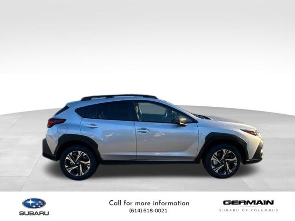 10-Way Power Driver's Seat, 4-Wheel Disc Brakes, 6 Speakers, ABS brakes, Air Conditioning, All-Weather Floor Liners, All-Weather Package, Alloy wheels, AM/FM radio: SiriusXM, Anti-whiplash front head restraints, Auto High-beam Headlights, Auto-Dimming Exterior Mirror w/Approach Light, Auto-Dimming Mirror w/Compass & HomeLink, Automatic temperature control, Blind Spot Detection (BSD), Brake assist, BSD/RCTA & All Wthr Pkg & Pwr Dr. Seat & Pwr Moonrf, Bumpers: body-color, Cloth Upholstery, Crosstrek Mirror Package, Driver door bin, Driver vanity mirror, Dual front impact airbags, Dual front side impact airbags, Dual-Mode Heated Front Seats, Electronic Stability Control, Emergency communication system, Exterior Parking Camera Rear, Four wheel independent suspension, Front anti-roll bar, Front Bucket Seats, Front Center Armrest, Front dual zone A/C, Front fog lights, Front reading lights, Fully automatic headlights, Heated Power Exterior Mirrors, Illuminated entry, Knee airbag, LED Upgrade, Low tire pressure warning, Occupant sensing airbag, Outside temperature display, Overhead airbag, Overhead console, Panic alarm, Passenger door bin, Passenger vanity mirror, Power door mirrors, Power Moonroof, Power steering, Power windows, Radio data system, Radio: Subaru 11.6" Multimedia Plus System, Rear anti-roll bar, Rear Bumper Cover, Rear Cross-Traffic Alert (RCTA) System, Rear seat center armrest, Rear window defroster, Rear window wiper, Remote keyless entry, Security system, Speed control, Speed-sensing steering, Split folding rear seat, Spoiler, Steering wheel mounted audio controls, Tachometer, Telescoping steering wheel, Tilt steering wheel, Traction control, Trip computer, Turn signal indicator mirrors, Variably intermittent wipers, Wheels: 17" x 7.0" J Machine Finish Aluminum-Alloy, Windshield De-Icer Wipers. AWD Ice Silver Metallic Lineartronic CVT 2.5L 4-Cylinder DOHC 16V