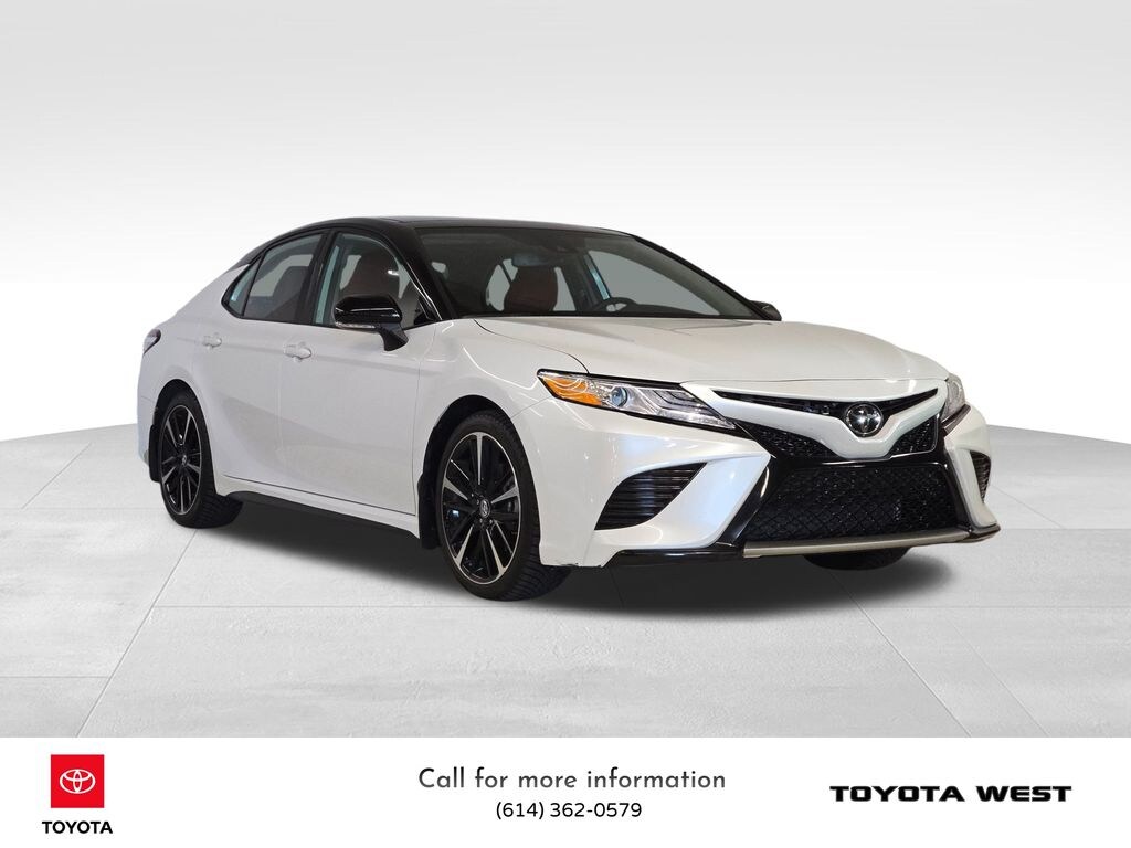 2020 Toyota Camry XSE FWD 8-Speed Automatic 2.5L I4 DOHC 16V Leather, 4-Wheel Disc Brakes, 6 Speakers, ABS brakes, Air Conditioning, Alloy wheels, AM/FM radio: SiriusXM, Apple CarPlay/Android Auto, Auto High-beam Headlights, Auto-dimming Rear-View mirror, Automatic temperature control, Brake assist, Bumpers: body-color, CD player, Compass, Delay-off headlights, Driver door bin, Driver vanity mirror, Dual front impact airbags, Dual front side impact airbags, Electronic Stability Control, Emergency communication system: Safety Connect with 1-year trial, Exterior Parking Camera Rear, Four wheel independent suspension, Front anti-roll bar, Front Bucket Seats, Front Center Armrest, Front dual zone A/C, Front reading lights, Fully automatic headlights, Garage door transmitter: HomeLink, Heated door mirrors, Heated front seats, Illuminated entry, Knee airbag, Leather Seat Trim, Leather Shift Knob, Low tire pressure warning, Multi-Stage Heated Front Bucket Seats, Occupant sensing airbag, Outside temperature display, Overhead airbag, Overhead console, Panic alarm, Passenger door bin, Passenger vanity mirror, Power door mirrors, Power driver seat, Power passenger seat, Power steering, Power windows, Radio data system, Radio: AM/FM/HD Audio Plus, Rear anti-roll bar, Rear reading lights, Rear seat center armrest, Rear side impact airbag, Rear window defroster, Remote keyless entry, Security system, Speed control, Speed-sensing steering, Split folding rear seat, Spoiler, Sport steering wheel, Steering wheel mounted audio controls, Tachometer, Telescoping steering wheel, Tilt steering wheel, Traction control, Trip computer, Turn signal indicator mirrors, Variably intermittent wipers, Wheels: 8.0J x 19" Black Machined-Finish Alloy, Leather.