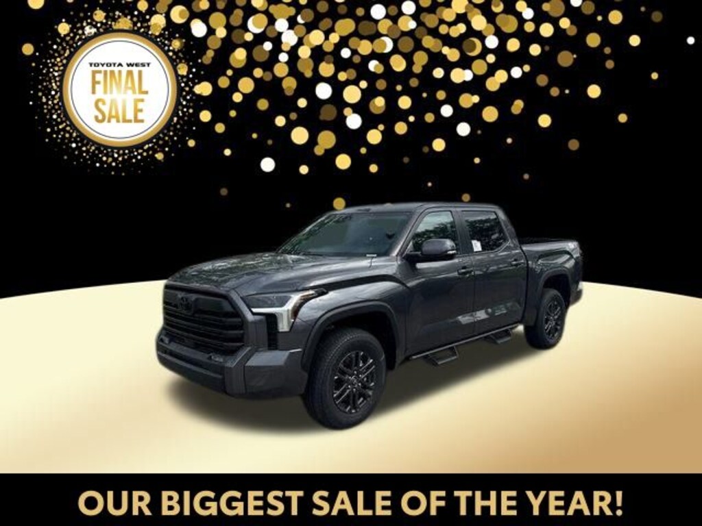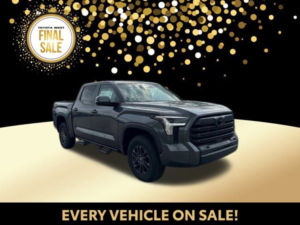 Gray 2025 Toyota Tundra SR5 4WD 10-Speed Automatic 3.4L V6 4WD, Black w/Fabric Seat Trim, 122L Fuel Tank, 18" Alloy Wheels, 3.31 Axle Ratio, 4-Wheel Disc Brakes, 9 Speakers, ABS brakes, Air Conditioning, All Weather Floor Liners (TMS), Alloy wheels, AM/FM radio: SiriusXM, Apple CarPlay/Android Auto, Auto High-beam Headlights, Automatic temperature control, Blind Spot Monitor, Blind Spot Monitor w/Lane Change Assist, Brake assist, Bumpers: body-color, Delay-off headlights, Driver door bin, Driver vanity mirror, Dual front impact airbags, Dual front side impact airbags, Dual-Step Running Board - Black (TMS), Electronic Stability Control, Emergency communication system: Safety Connect (10-year trial), Exterior Parking Camera Rear, Fabric Seat Trim, Fabric Seat Trim (FB), Front anti-roll bar, Front Bucket Seats, Front Center Armrest, Front fog lights, Front reading lights, Front wheel independent suspension, Fully automatic headlights, Heated door mirrors, Illuminated entry, Knee airbag, Low tire pressure warning, Occupant sensing airbag, Outside temperature display, Overhead airbag, Overhead console, Panic alarm, Parking Support Alert/Brake, Passenger door bin, Passenger vanity mirror, Phone Cables - Smart USB (TMS), Power door mirrors, Power driver seat, Power steering, Power windows, Radio data system, Radio: Audio Multimedia System, Rear reading lights, Rear step bumper, Rear window defroster, Remote keyless entry, Safety Connect, Security system, Speed control, Speed-sensing steering, Split folding rear seat, SR5 Convenience Package, SR5 Painted Mirror, Stainless Steel Door Edge Guards (TMS), Steering wheel mounted audio controls, SX Package, Tachometer, Tailgate Insert - Black (TMS), Telescoping steering wheel, Tilt steering wheel, Traction control, Tri-Fold Tonneau Cover (TMS), Trip computer, Variably intermittent wipers, Voltmeter, Wheel Locks (TMS), Wheels: 18" Dark Gray Metallic Alloy, 4WD, Black w/Fabric Seat Trim. Price includes: ALL MANUFACTURER REBATE$3000 - TMS Customer Cash . Exp. 01/05/2026