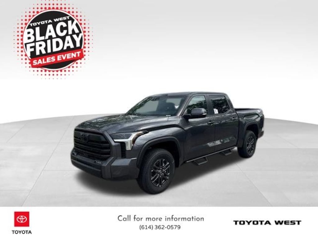 Gray 2025 Toyota Tundra SR5 4WD 10-Speed Automatic 3.4L V6 4WD, Black w/Fabric Seat Trim, 122L Fuel Tank, 18" Alloy Wheels, 3.31 Axle Ratio, 4-Wheel Disc Brakes, 9 Speakers, ABS brakes, Air Conditioning, All Weather Floor Liners (TMS), Alloy wheels, AM/FM radio: SiriusXM, Apple CarPlay/Android Auto, Auto High-beam Headlights, Automatic temperature control, Blind Spot Monitor, Blind Spot Monitor w/Lane Change Assist, Brake assist, Bumpers: body-color, Delay-off headlights, Driver door bin, Driver vanity mirror, Dual front impact airbags, Dual front side impact airbags, Dual-Step Running Board - Black (TMS), Electronic Stability Control, Emergency communication system: Safety Connect (10-year trial), Exterior Parking Camera Rear, Fabric Seat Trim, Fabric Seat Trim (FB), Front anti-roll bar, Front Bucket Seats, Front Center Armrest, Front fog lights, Front reading lights, Front wheel independent suspension, Fully automatic headlights, Heated door mirrors, Illuminated entry, Knee airbag, Low tire pressure warning, Occupant sensing airbag, Outside temperature display, Overhead airbag, Overhead console, Panic alarm, Parking Support Alert/Brake, Passenger door bin, Passenger vanity mirror, Phone Cables - Smart USB (TMS), Power door mirrors, Power driver seat, Power steering, Power windows, Radio data system, Radio: Audio Multimedia System, Rear reading lights, Rear step bumper, Rear window defroster, Remote keyless entry, Safety Connect, Security system, Speed control, Speed-sensing steering, Split folding rear seat, SR5 Convenience Package, SR5 Painted Mirror, Stainless Steel Door Edge Guards (TMS), Steering wheel mounted audio controls, SX Package, Tachometer, Tailgate Insert - Black (TMS), Telescoping steering wheel, Tilt steering wheel, Traction control, Tri-Fold Tonneau Cover (TMS), Trip computer, Variably intermittent wipers, Voltmeter, Wheel Locks (TMS), Wheels: 18" Dark Gray Metallic Alloy, 4WD, Black w/Fabric Seat Trim. Price includes: ALL MANUFACTURER REBATE$3000 - TMS Customer Cash . Exp. 12/01/2025