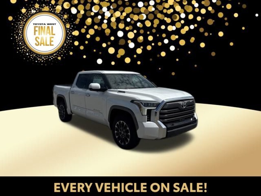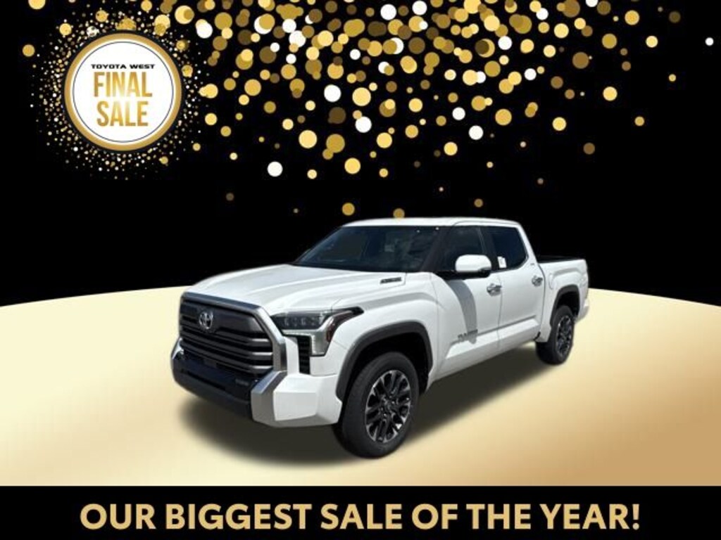 Wind Chill Pearl 2025 Toyota Tundra Hybrid Limited 4WD 10-Speed Automatic 3.4L V6 3.4L V6, 20" x 8" Alloy Wheels, 3.31 Axle Ratio, 4-Wheel Disc Brakes, 9 Speakers, ABS brakes, Air Conditioning, Alloy wheels, AM/FM radio: SiriusXM, Apple CarPlay/Android Auto, Auto High-beam Headlights, Auto-dimming door mirrors, Auto-dimming Rear-View mirror, Automatic temperature control, Brake assist, Bumpers: body-color, Delay-off headlights, Driver door bin, Driver vanity mirror, Dual front impact airbags, Dual front side impact airbags, Electronic Stability Control, Emergency communication system: Safety Connect (10-year trial), Exterior Parking Camera Rear, Front anti-roll bar, Front Bucket Seats, Front Center Armrest, Front dual zone A/C, Front fog lights, Front reading lights, Front wheel independent suspension, Fully automatic headlights, Garage door transmitter: HomeLink, Heated & Ventilated Front Bucket Seats, Heated door mirrors, Heated front seats, Heated steering wheel, Illuminated entry, Knee airbag, Leather Shift Knob, Leather steering wheel, Low tire pressure warning, Memory seat, Navigation System, Occupant sensing airbag, Outside temperature display, Overhead airbag, Overhead console, Panic alarm, Passenger door bin, Passenger vanity mirror, Power door mirrors, Power driver seat, Power passenger seat, Power steering, Power windows, Radio data system, Radio: Audio Plus, Rear reading lights, Rear seat center armrest, Rear step bumper, Rear window defroster, Remote keyless entry, Security system, SofTex Seat Trim, Speed control, Speed-sensing steering, Split folding rear seat, Steering wheel mounted audio controls, Tachometer, Telescoping steering wheel, Tilt steering wheel, Traction control, Trip computer, Turn signal indicator mirrors, Variably intermittent wipers, Ventilated front seats, Voltmeter, 3.4L V6. Price includes: ALL MANUFACTURER REBATE$3000 - TMS Customer Cash . Exp. 01/05/2026