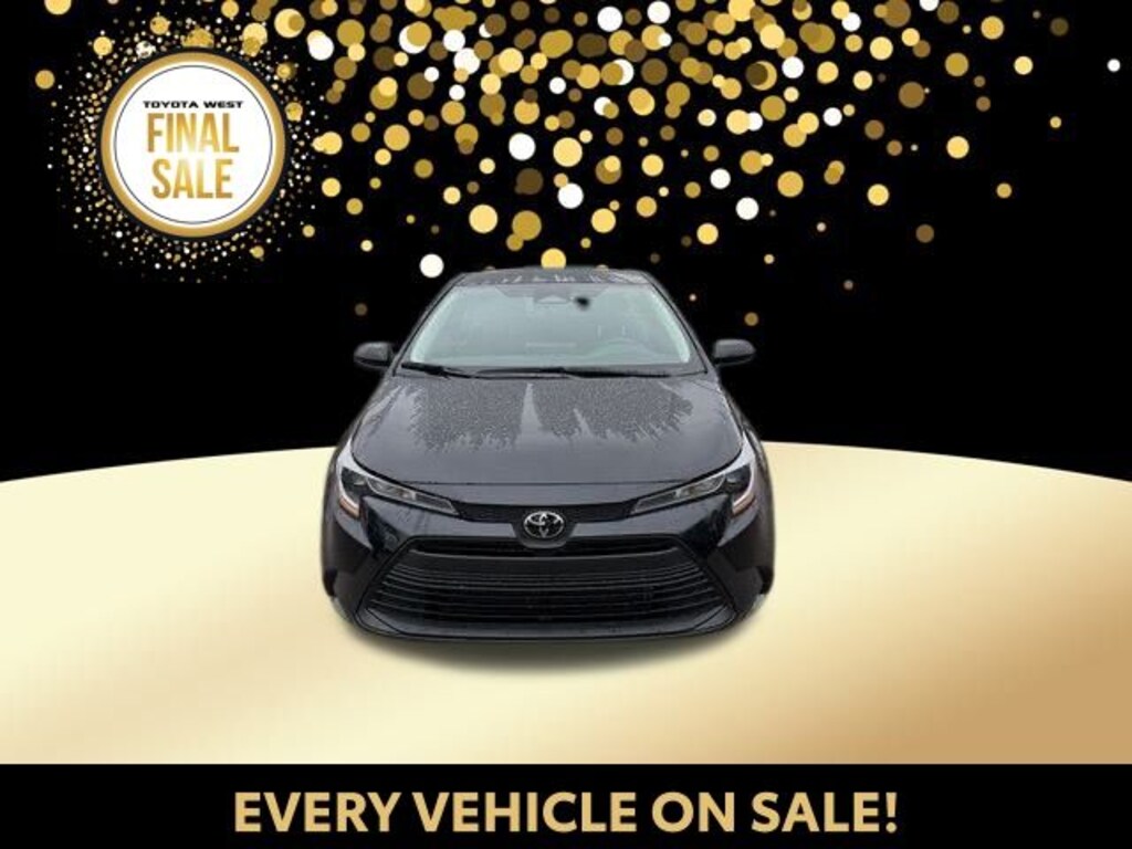 Midnight Black Metallic 2026 Toyota Corolla LE FWD CVT 2.0L I4 PDI DOHC 16V LEV3-SULEV30 169hp 4-Wheel Disc Brakes, 6 Speakers, ABS brakes, Air Conditioning, All Weather Floor Liner Package, AM/FM radio: SiriusXM, Apple CarPlay/Android Auto, Auto High-beam Headlights, Automatic temperature control, Brake assist, Bumpers: body-color, Delay-off headlights, Driver door bin, Driver vanity mirror, Dual front impact airbags, Dual front side impact airbags, Electronic Stability Control, Emergency communication system: Safety Connect (up to 10-year trial subscription), Exterior Parking Camera Rear, Fabric Seat Trim, Front anti-roll bar, Front Bucket Seats, Front Center Armrest, Front reading lights, Front wheel independent suspension, Fully automatic headlights, Heated door mirrors, Illuminated entry, Knee airbag, Low tire pressure warning, Occupant sensing airbag, Outside temperature display, Overhead airbag, Panic alarm, Passenger door bin, Passenger vanity mirror, Power door mirrors, Power steering, Power windows, Radio data system, Radio: 8" Toyota Audio Multimedia, Rear anti-roll bar, Rear seat center armrest, Rear side impact airbag, Rear window defroster, Remote keyless entry, Speed control, Split folding rear seat, Steering wheel mounted audio controls, Tachometer, Telescoping steering wheel, Tilt steering wheel, Traction control, Trip computer, Wheels: 16" Steel with Covers.
