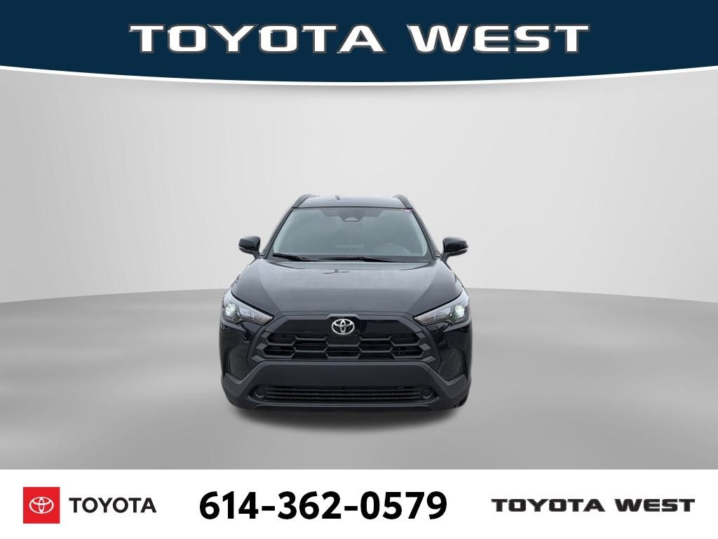 Jet Black 2026 Toyota Corolla Cross LE FWD CVT 2.0L I4 PDI DOHC 16V LEV3-SULEV30 169hp 4-Wheel Disc Brakes, 6 Speakers, ABS brakes, Air Conditioning, Alloy wheels, AM/FM radio: SiriusXM, Auto High-beam Headlights, Automatic temperature control, Brake assist, Bumpers: body-color, Delay-off headlights, Driver door bin, Driver vanity mirror, Dual front impact airbags, Dual front side impact airbags, Electronic Stability Control, Emergency communication system: Safety Connect (10-year trial), Exterior Parking Camera Rear, Fabric Seat Trim, Front anti-roll bar, Front Bucket Seats, Front Center Armrest, Front reading lights, Front Seats, Front wheel independent suspension, Fully automatic headlights, Heated door mirrors, Illuminated entry, Knee airbag, Leather steering wheel, Low tire pressure warning, Occupant sensing airbag, Outside temperature display, Overhead airbag, Panic alarm, Passenger door bin, Passenger vanity mirror, Power door mirrors, Power steering, Power windows, Radio data system, Radio: 8" Toyota Audio Multimedia with 6 Speakers, Rear anti-roll bar, Rear side impact airbag, Rear window defroster, Rear window wiper, Remote keyless entry, Speed control, Split folding rear seat, Spoiler, Steering wheel mounted audio controls, Tachometer, Telescoping steering wheel, Tilt steering wheel, Traction control, Trip computer, Turn signal indicator mirrors, Variably intermittent wipers, Wheels: 17" Silver-Painted Alloy.