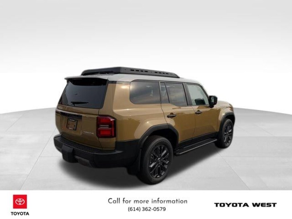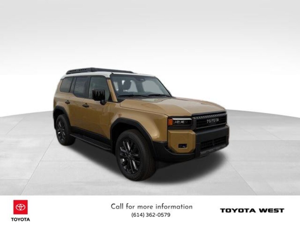 Trail Dust/Gray Scape 2025 Toyota Land Cruiser 4WD 8-Speed Automatic 2.4L 4-Cylinder 2.4L 4-Cylinder, Black w/Fabric Seat Trim, 10 Speakers, 4-Wheel Disc Brakes, ABS brakes, Air Conditioning, Alloy wheels, AM/FM radio: SiriusXM, Apple CarPlay/Android Auto, Auto High-beam Headlights, Auto-dimming Rear-View mirror, Automatic temperature control, Brake assist, Compass, Delay-off headlights, Driver door bin, Driver vanity mirror, Dual front impact airbags, Dual front side impact airbags, Electronic Stability Control, Emergency communication system: Safety Connect (up to 10-year trial subscription), Exterior Parking Camera Rear, Front anti-roll bar, Front Bucket Seats, Front Center Armrest, Front dual zone A/C, Front fog lights, Front reading lights, Front wheel independent suspension, Fully automatic headlights, Garage door transmitter: HomeLink, Heated & Ventilated Front Seats, Heated door mirrors, Heated front seats, Heated steering wheel, Illuminated entry, Knee airbag, Leather Shift Knob, Leather steering wheel, Low tire pressure warning, Navigation system: Drive Connect Cloud Navigation (1-year trial subscription), Occupant sensing airbag, Outside temperature display, Overhead airbag, Overhead console, Panic alarm, Passenger door bin, Passenger vanity mirror, Power door mirrors, Power driver seat, Power Liftgate, Power steering, Power windows, Radio data system, Radio: Toyota Audio Multimedia System, Rain sensing wipers, Rear air conditioning, Rear anti-roll bar, Rear reading lights, Rear seat center armrest, Rear window defroster, Rear window wiper, Remote keyless entry, Security system, SofTex Synthetic Leather Seat Trim, Speed control, Speed-sensing steering, Split folding rear seat, Spoiler, Steering wheel mounted audio controls, Telescoping steering wheel, Tilt steering wheel, Traction control, Trip computer, Turn signal indicator mirrors, Variably intermittent wipers, Ventilated front seats, Wheels: 18" x 7.5J Matte Gray Alloy, 2.4L 4-Cylinder, Black w/Fabric Seat Trim.