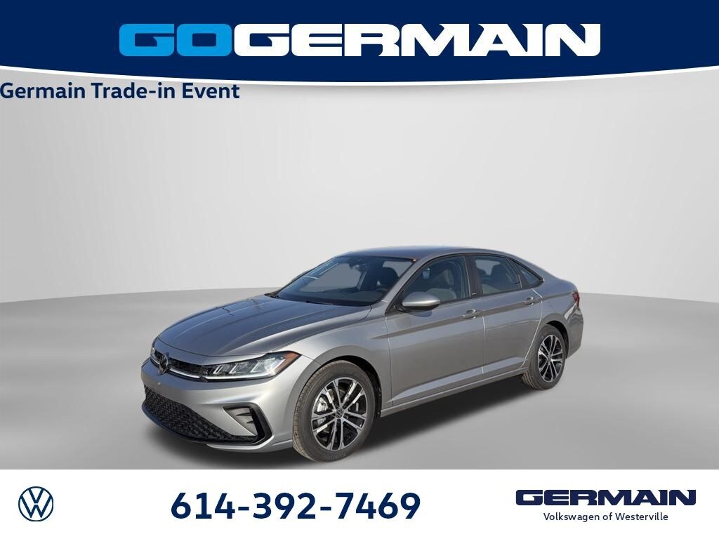 With each new VW purchase your first two oil changes (10k & 20k) are on Volkswagen. Come see why our customers rate us at 4.9 out of 5 stars! We offer the lowest interest rates for perfect credit and pre-approvals are easy for most credit situations! Sale price is in lieu of manufacture low APR options or special lease offers. This vehicle may be reserved. Contact dealer to confirm availability. Prices are subject to change without notice. While we try to make sure that all prices posted here are accurate at all times, we cannot be responsible for typographical and other errors that may appear on the site. If the posted price for a vehicle is incorrect due to typographical or other error (e.G., Data transmission), this dealership or website provider is only responsible for the correct price, which we will endeavor to provide to you as soon as we become aware of the error. We make every effort to provide you the most accurate, up-to-the-minute information, however it is your responsibility to verify with the dealer that all details listed are accurate. Pyrite Silver Metallic 2026 Volkswagen Jetta 1.5T Sport FWD 8-Speed Automatic with Tiptronic 1.5L I-4 DI DOHC Turbocharged Titan Black w/Cloth Seat Trim, ABS brakes, Active Cruise Control, Alloy wheels, Electronic Stability Control, Front dual zone A/C, Heated door mirrors, Heated Front Seats, Heated front seats, Illuminated entry, Low tire pressure warning, Remote keyless entry, Traction control, 4 Speakers, 4-Wheel Disc Brakes, Active Blind Spot Monitor, Air Conditioning, Auto-dimming Rear-View mirror, Automatic temperature control, Brake assist, Bumpers: body-color, Cloth Seat Trim, Delay-off headlights, Driver door bin, Driver vanity mirror, Dual front impact airbags, Dual front side impact airbags, Emergency communication system: VW Car-Net Safe & Secure 5-year, Exterior Parking Camera Rear, Front anti-roll bar, Front Bucket Seats, Front Center Armrest, Front wheel independent suspension, Fully automatic headlights, Leather Shift Knob, Leather steering wheel, Occupant sensing airbag, Outside temperature display, Overhead airbag, Overhead console, Panic alarm, Passenger door bin, Passenger vanity mirror, Power door mirrors, Power steering, Power windows, Radio data system, Rain sensing wipers, Rear anti-roll bar, Rear reading lights, Rear seat center armrest, Rear window defroster, Speed control, Speed-sensing steering, Split folding rear seat, Steering wheel mounted audio controls, Tachometer, Telescoping steering wheel, Tilt steering wheel, Trip computer, Variably intermittent wipers, Wheels: 17" 2-Tone Machined Alloy, Titan Black w/Cloth Seat Trim, ABS brakes, Active Cruise Control, Alloy wheels, Electronic Stability Control, Front dual zone A/C, Heated door mirrors, Heated Front Seats, Heated front seats, Illuminated entry, Low tire pressure warning, Remote keyless entry, Traction control.